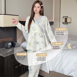 带胸垫空气棉月子服秋冬产后纯棉12月份产妇哺乳睡衣冬季 孕妇套装