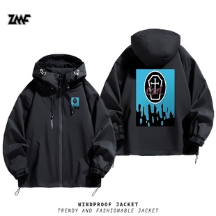 Halcyon 春秋 山系户外泡泡纱连帽套头夹克外套男半拉链宽松套头衫