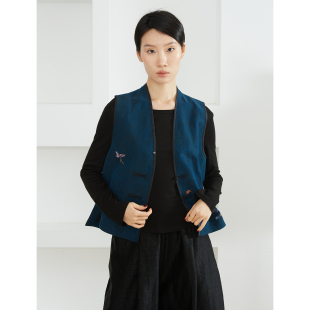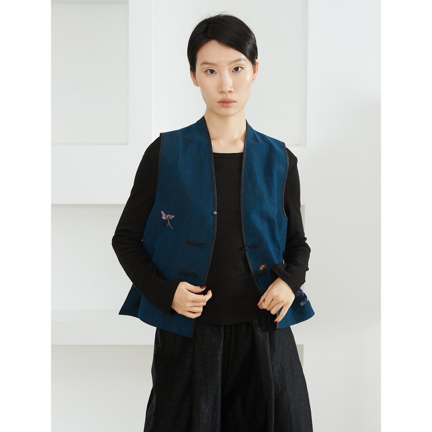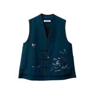 一丝牵 外套 重工刺绣100%桑蚕丝香云纱龟纹V领真丝马甲女国风开衫