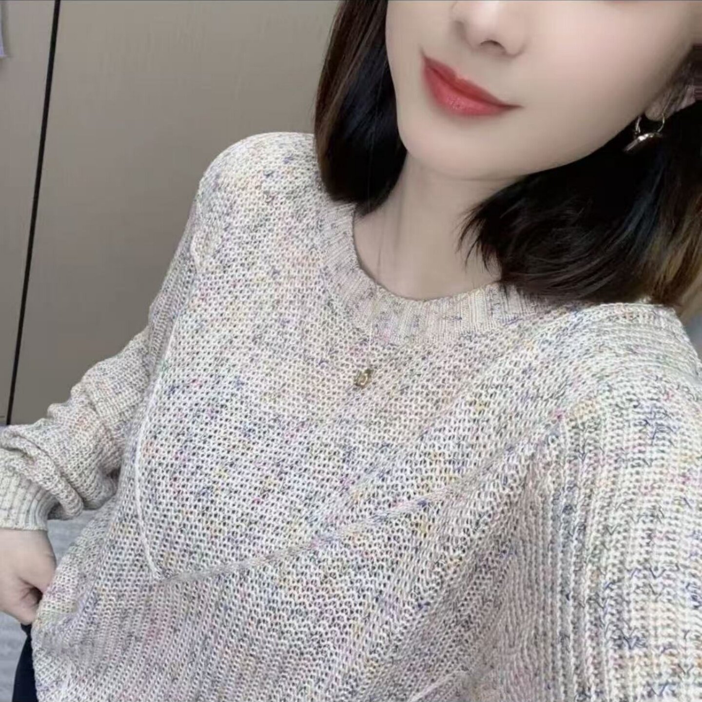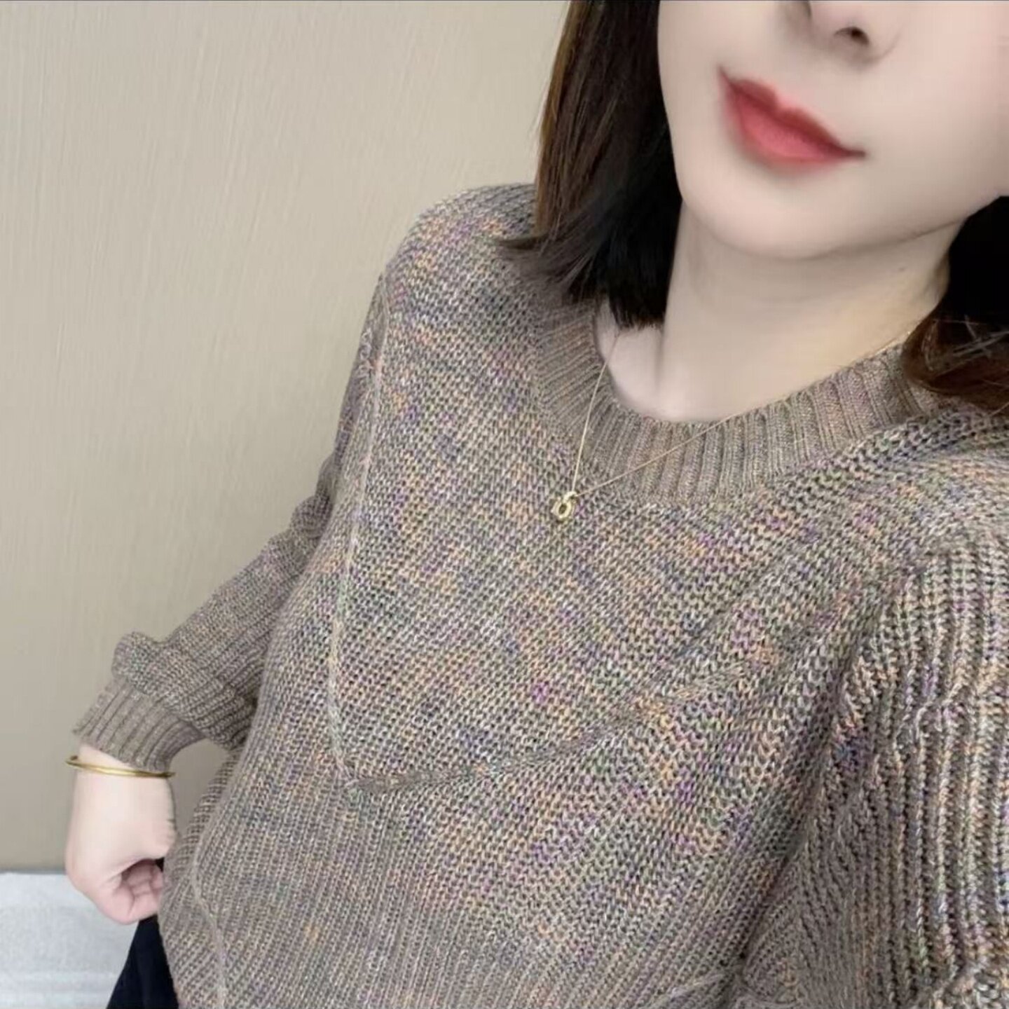 百搭女士宽松圆领针织衫 2025新款 彩色漂亮棉衫 韩版 圆领早秋长袖
