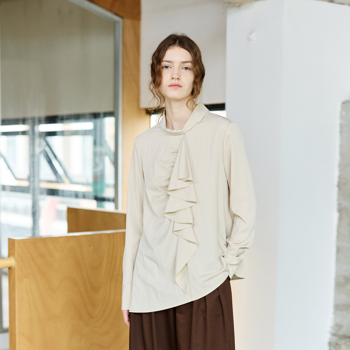 衬衫 立领宽松通勤长袖 女设计感不对称荷叶边衬衣 RESTRAIN法式 NON