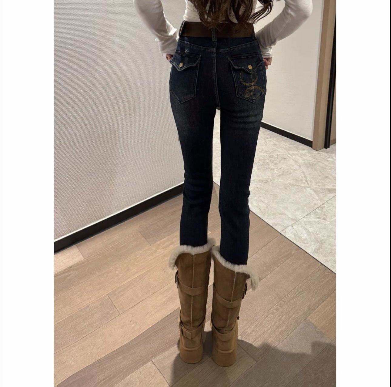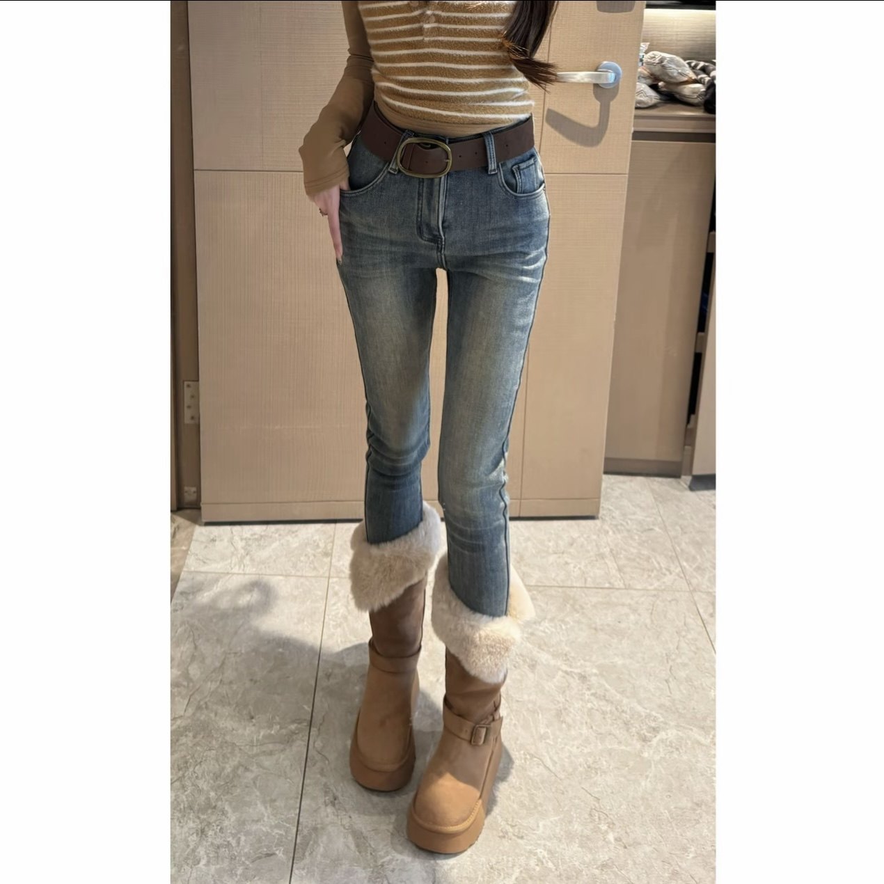 复古宽松显瘦百搭高腰牛仔裤 韩版 女加绒加厚 2025秋冬新款 Miss家