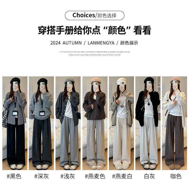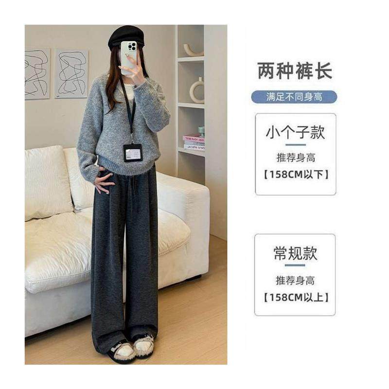 加绒慵懒松弛感裤 小个子休闲运动阔腿裤 子 女秋冬新款 深灰色糯米裤