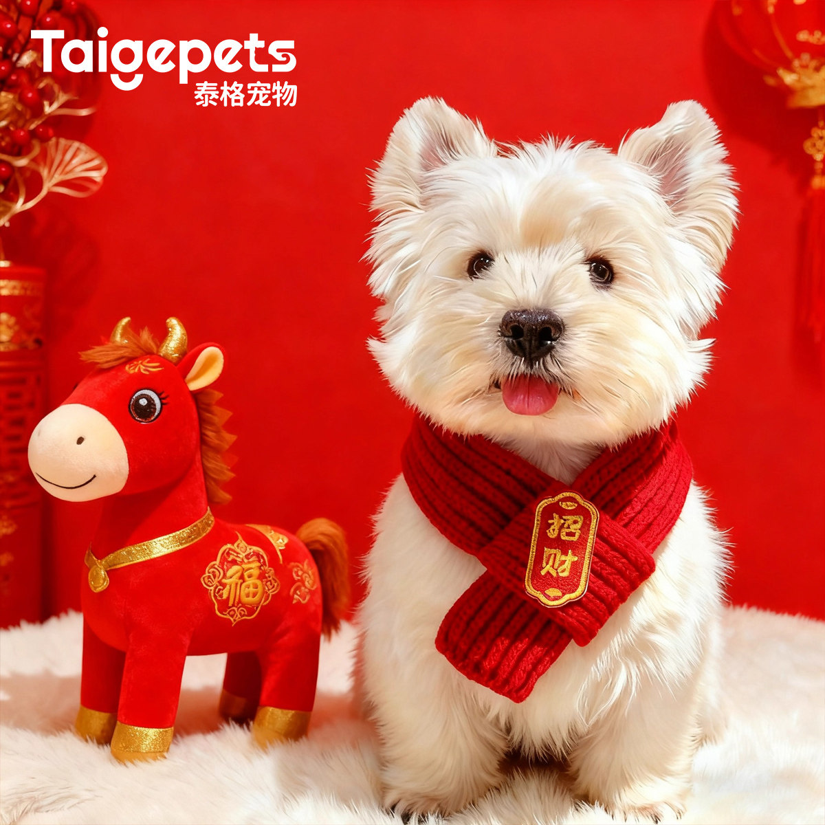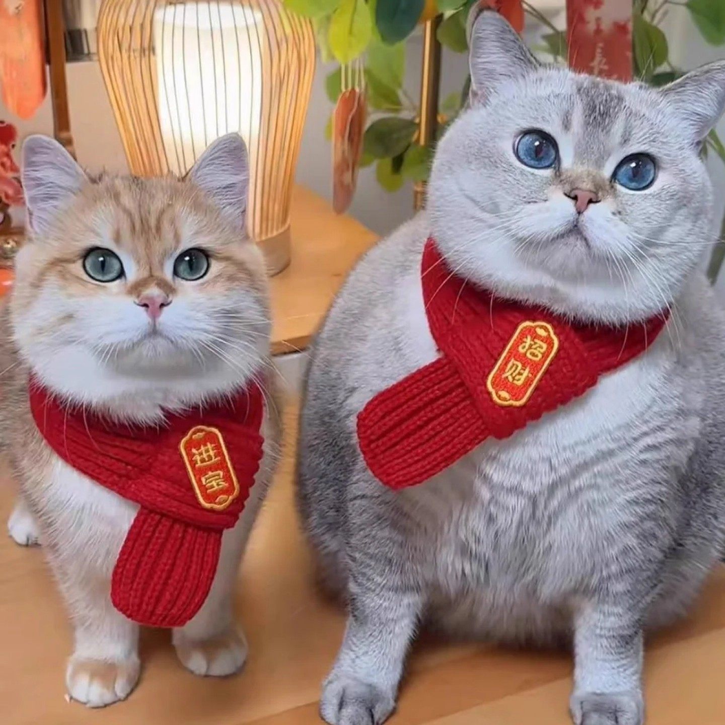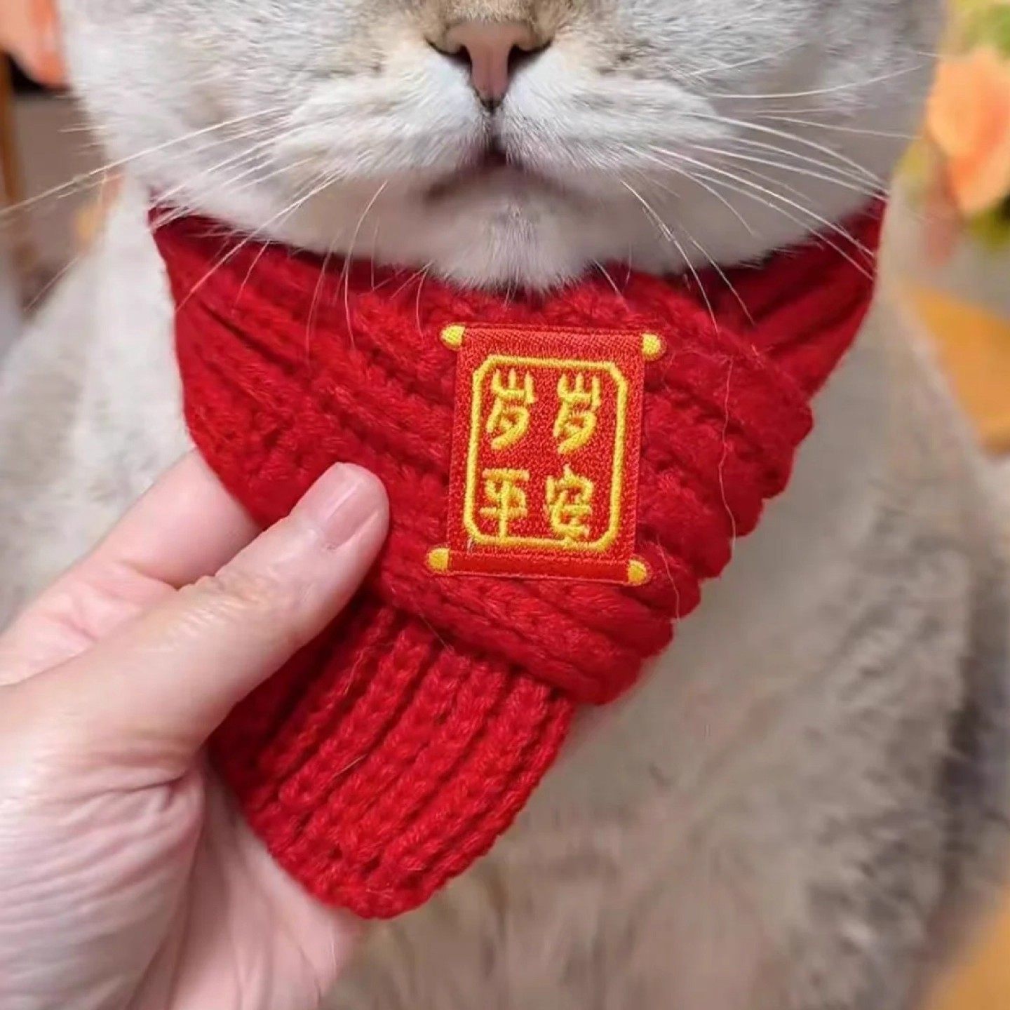 猫咪新年围脖狗狗可爱项圈毛线保暖宠物围巾围兜红色过年喜庆配饰