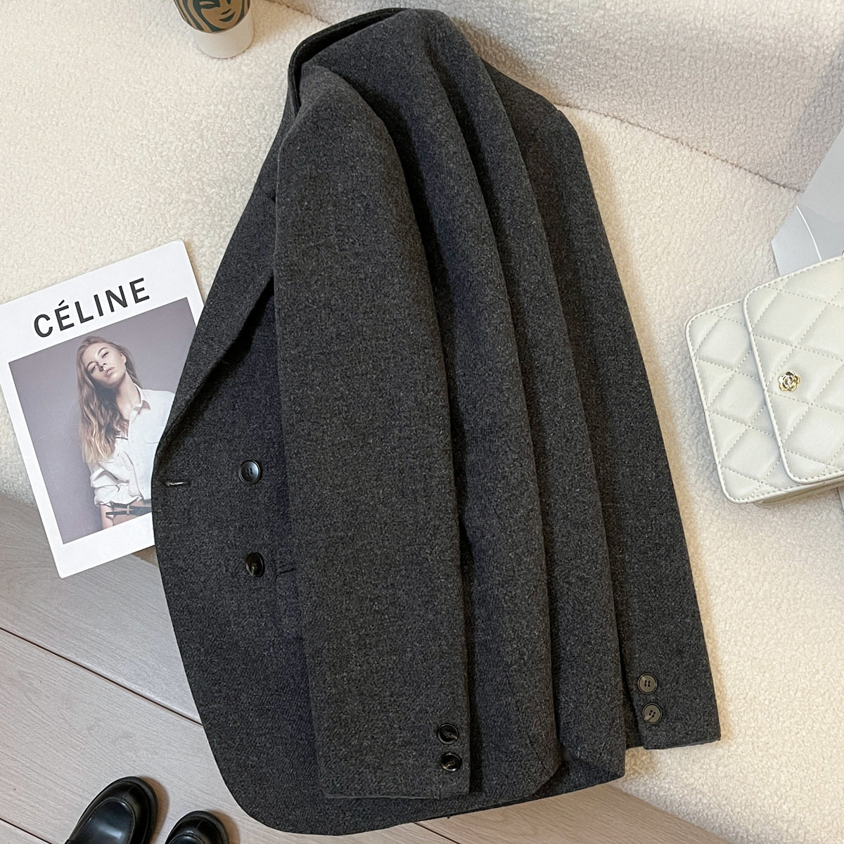 慵懒风双面羊毛大衣女中长款 灰色毛呢外套高级感