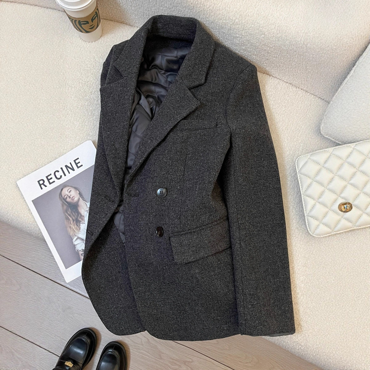 套装 MULVAN 外套女半身裙高腰裙裤 复古宽松撞色毛呢西装 旧厅橱窗