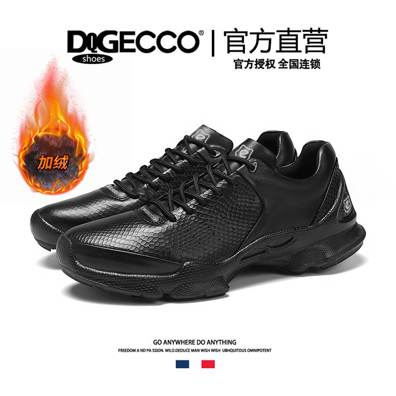 运动健步鞋 DQGECCO品牌男鞋 防滑透气休闲鞋 真皮鞋 15周年秋冬男士