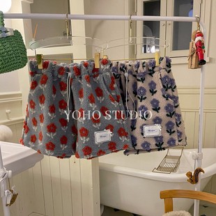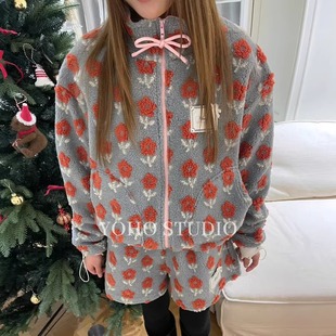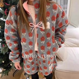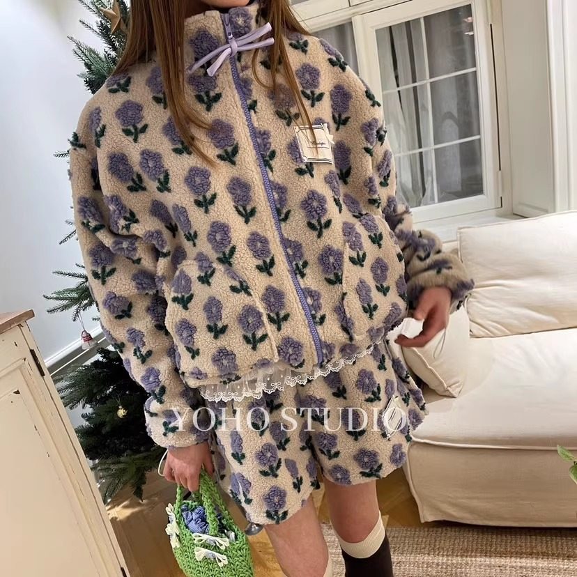套装 韩国东大门2025冬季 休闲印花拉链羊羔毛厚外套短裤 时尚 女 新款