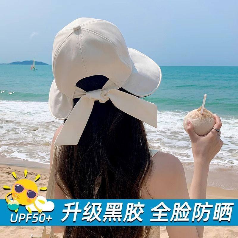 蝴蝶结渔夫帽黑胶防晒帽女士春夏季 防紫外线遮脸大帽檐遮阳帽子女