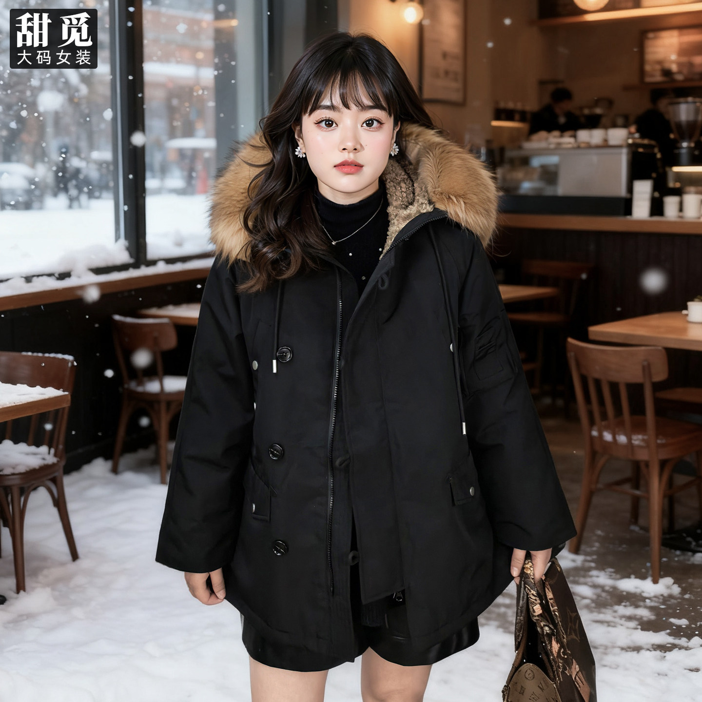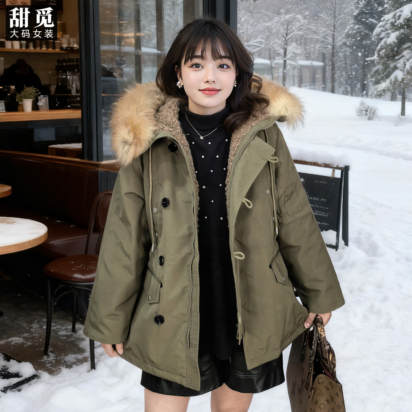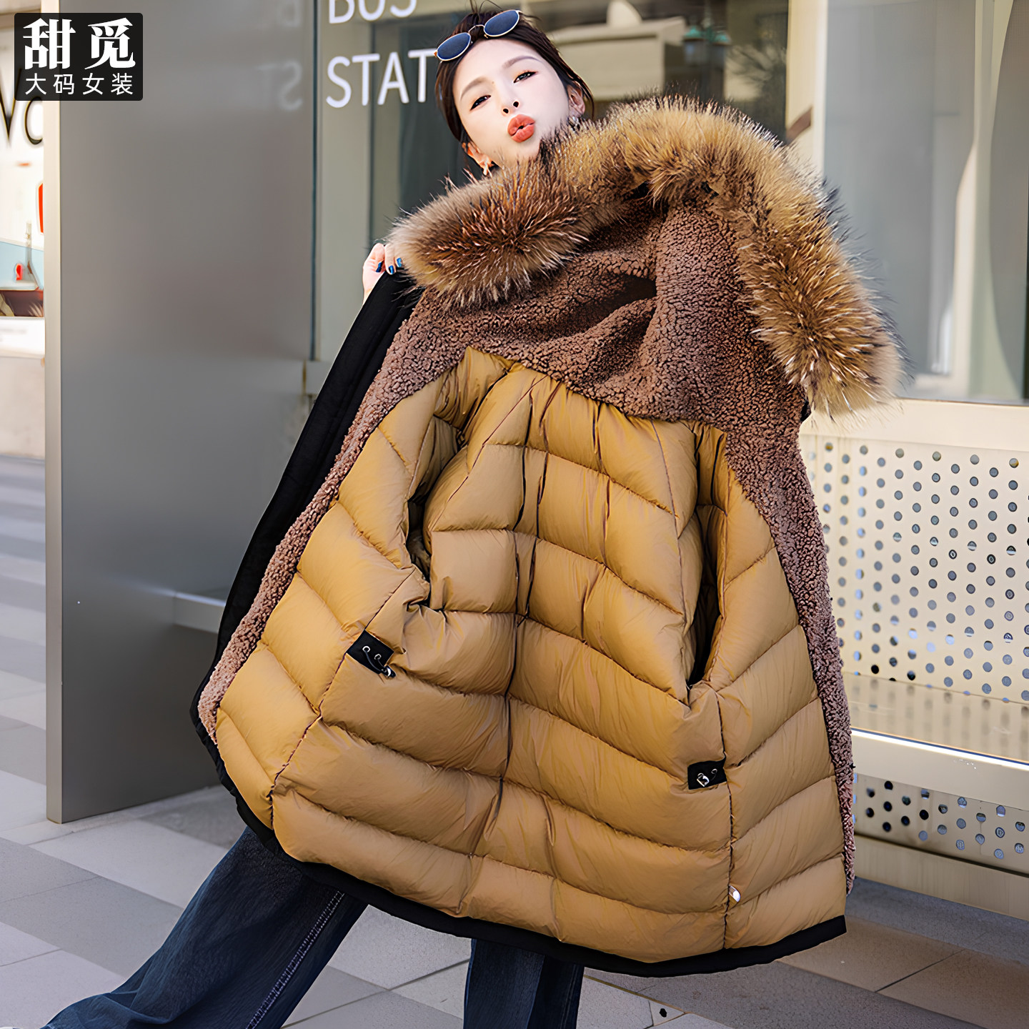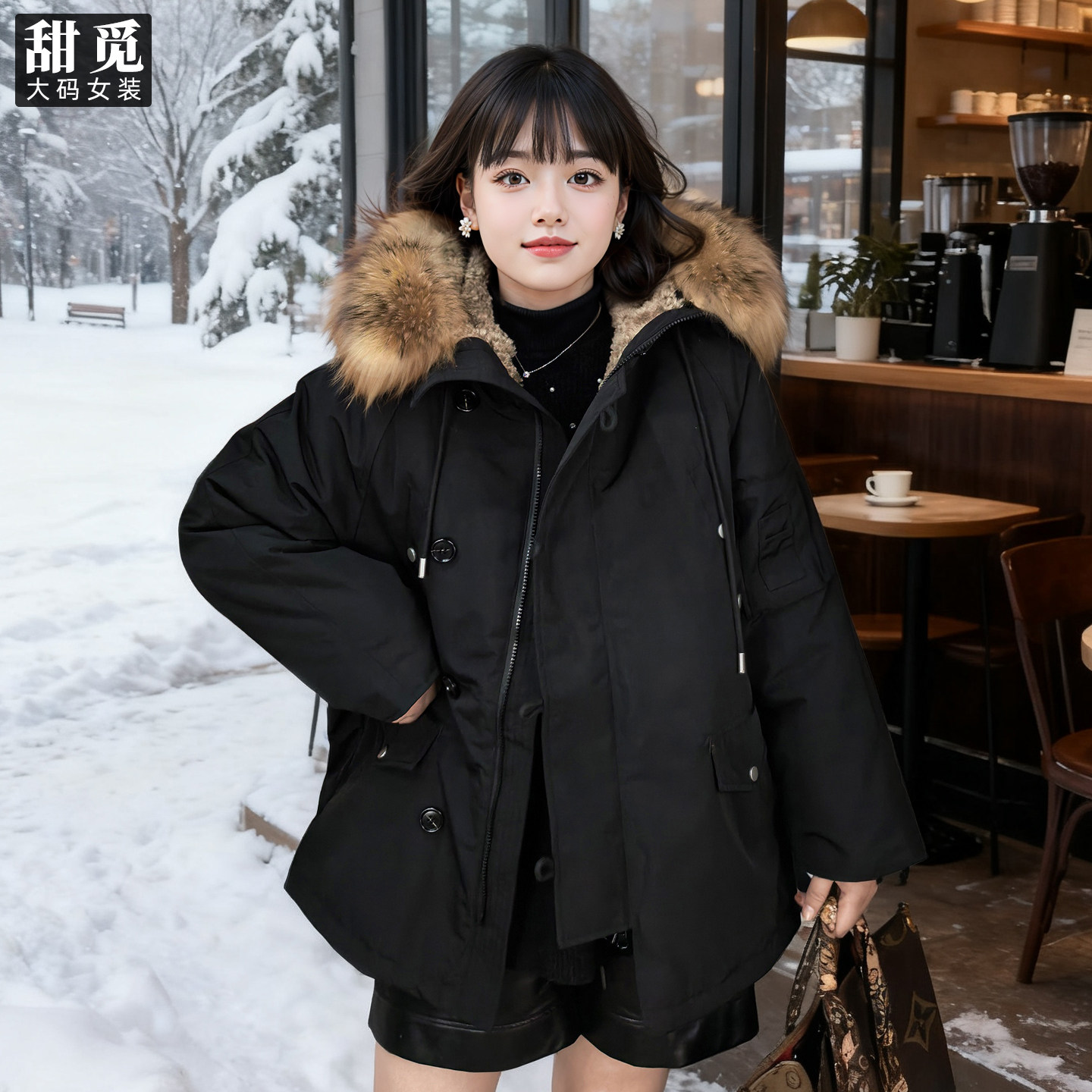 老章和小胖PONGKIKI真貉子毛菲奥娜美式 宽松羽绒外套 羽绒服女大码