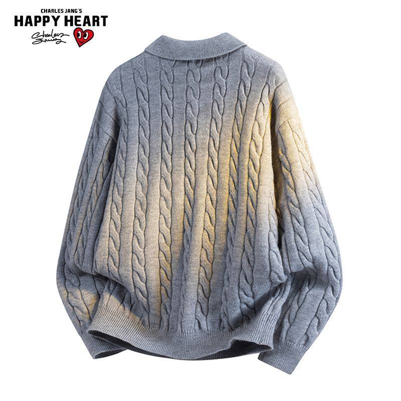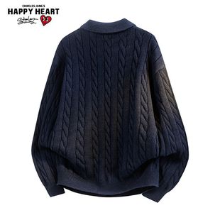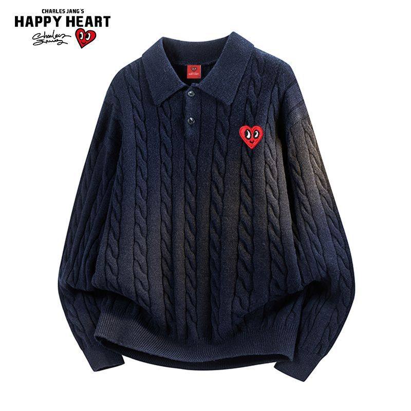 上衣 翻领情侣针织宽松毛衣休闲针织衫 查尔斯桃心慵懒秋冬季 新款