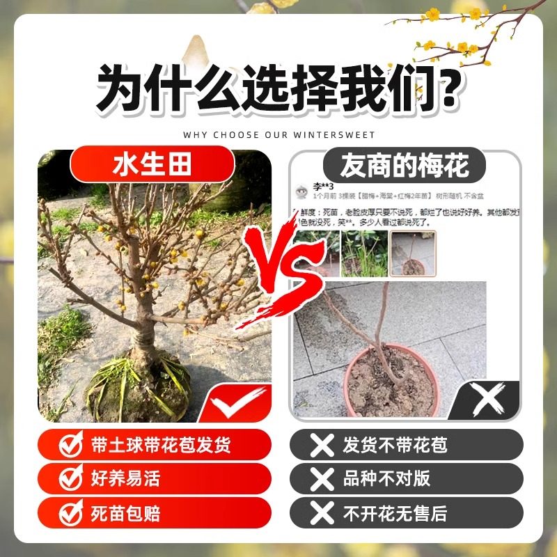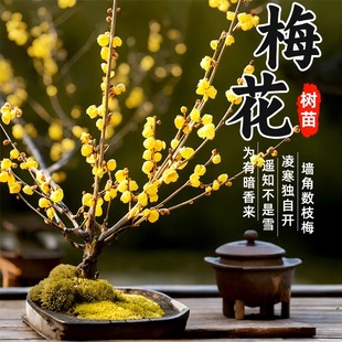 腊梅盆栽梅花树苗梅花盆景浓香型花卉红梅鲜花枝耐寒老桩阳台花苗