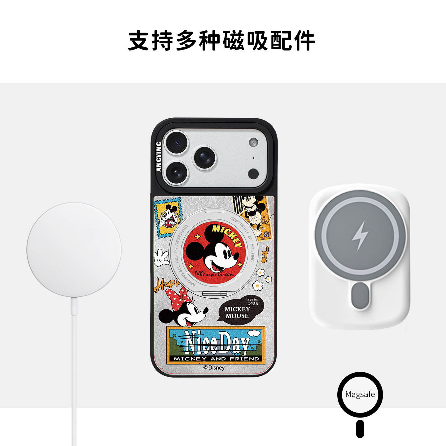 iphone16pro磁吸带支架ip15支点Yo6超火 海报米奇适用苹果17promax手机壳新款 网红可爱套高级感 ANGYING