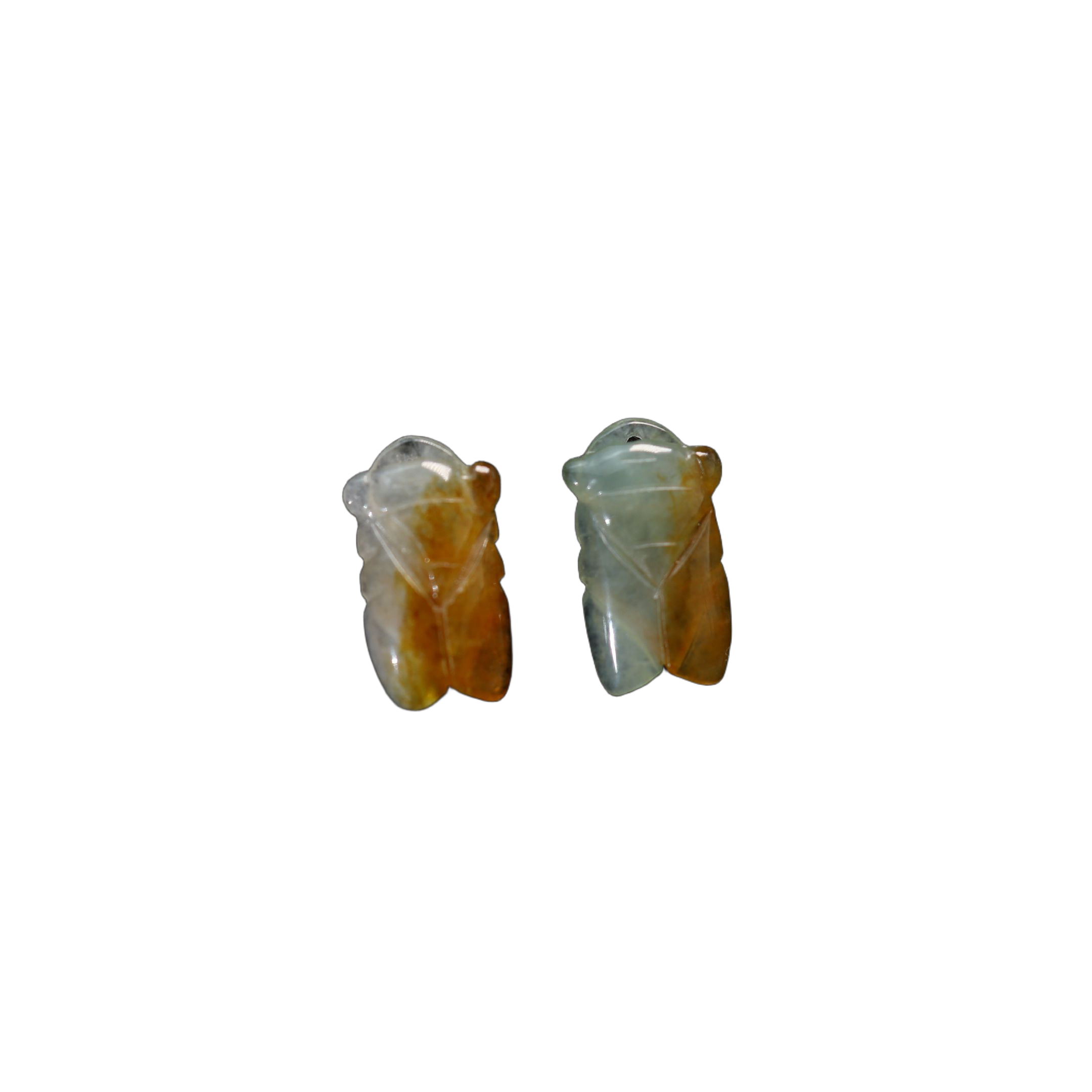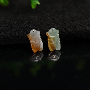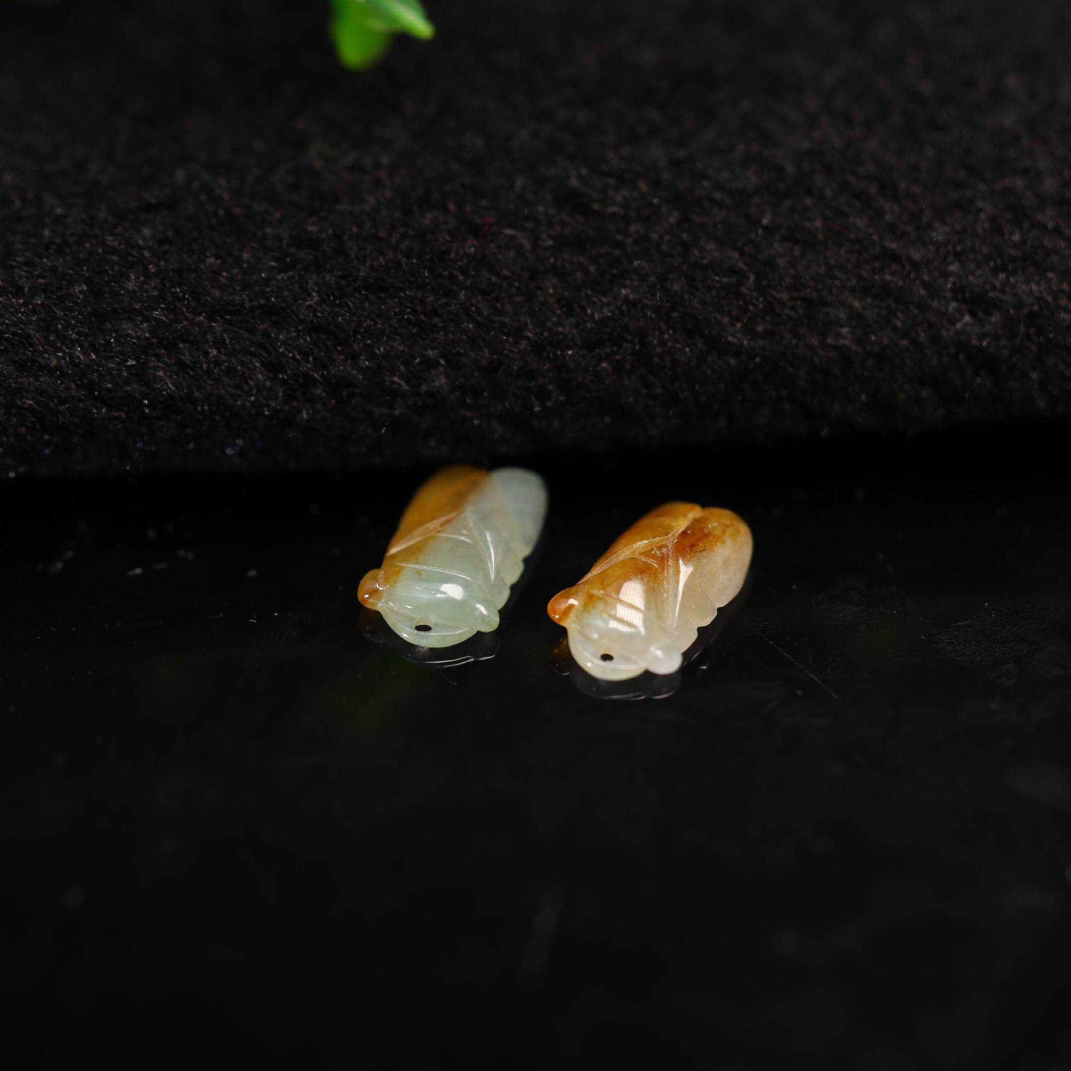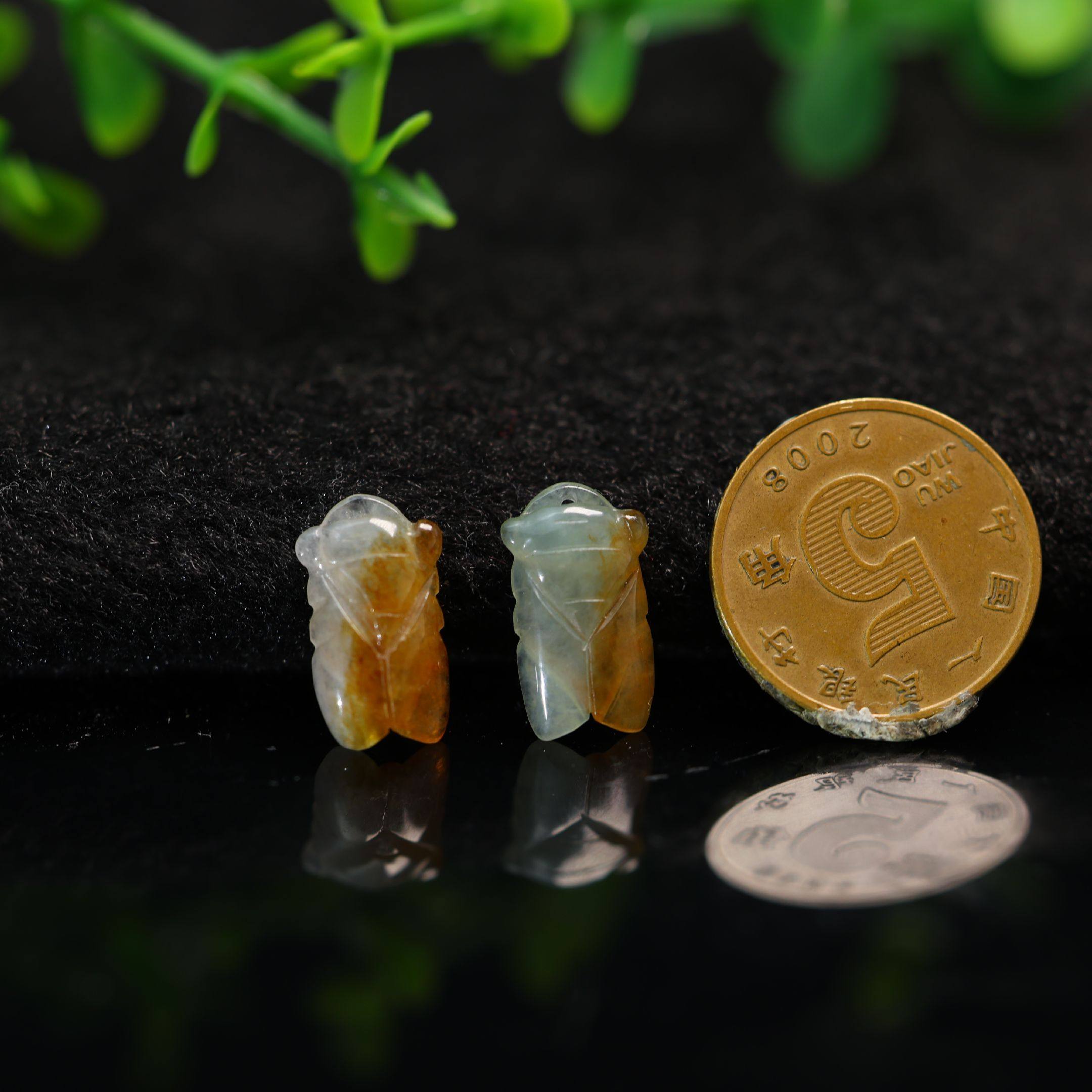J745一对冰种飘黄翡缅甸天然A货翡翠玉蝉一鸣惊人知了小吊坠坠角