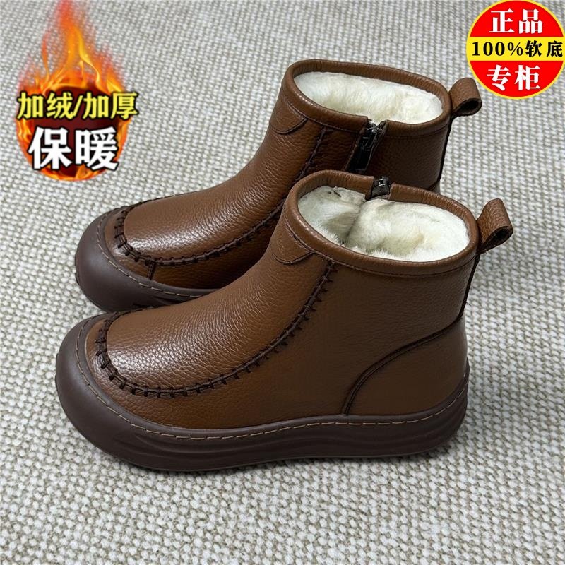 拉链加绒雪地靴加厚保暖防滑妈妈棉靴女鞋 老北京棉鞋 新款 2025冬季