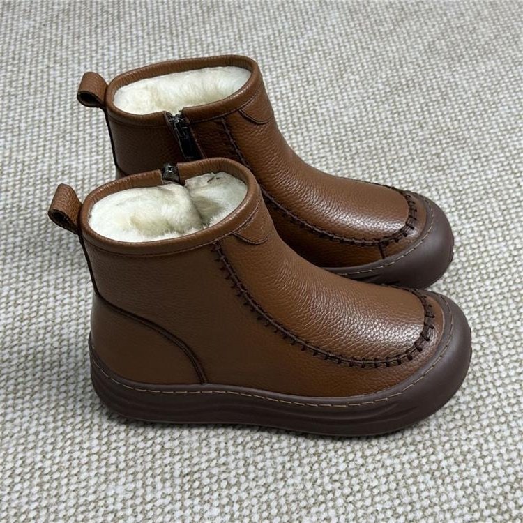 雪地靴加厚棉鞋 骆驼女鞋 加绒保暖时尚 新款 休闲短靴女 2025冬季