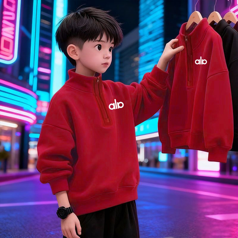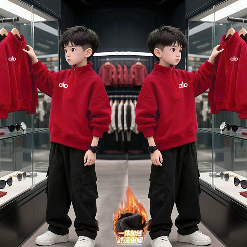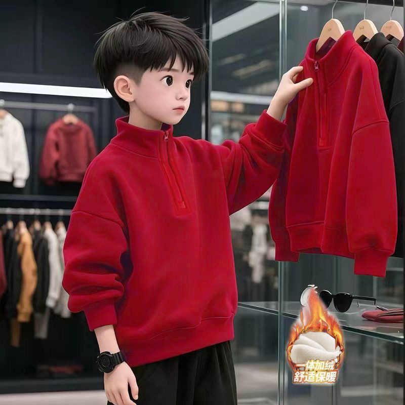 男童秋冬季 保暖上衣 加绒加厚卫衣2026红色中小童立领洋气儿童长袖
