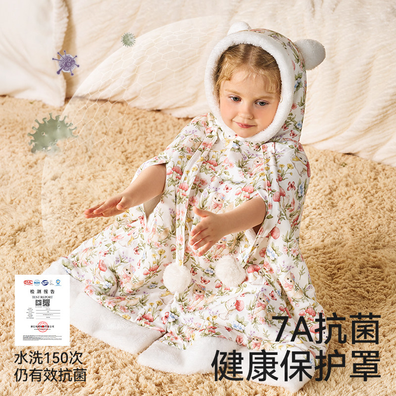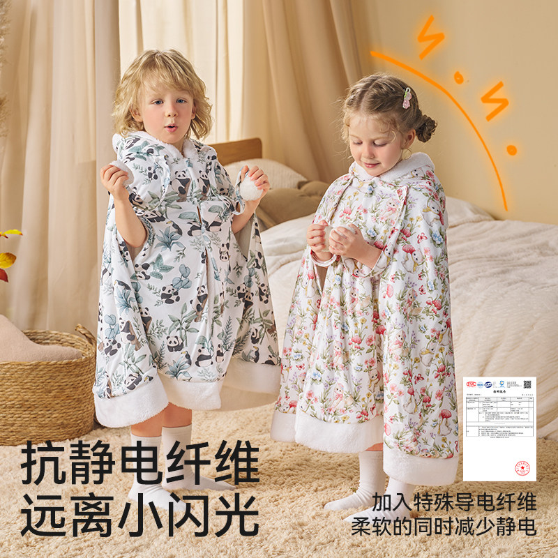 学生儿童午睡毯午休趴睡毯毛绒加厚保暖披肩毯斗篷披风毯带帽骑车