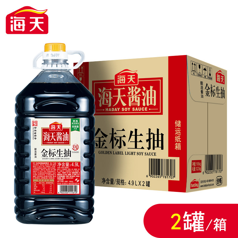 海天生抽酱油2.2kg优选黄豆酿造家用厨房炒菜烹饪
