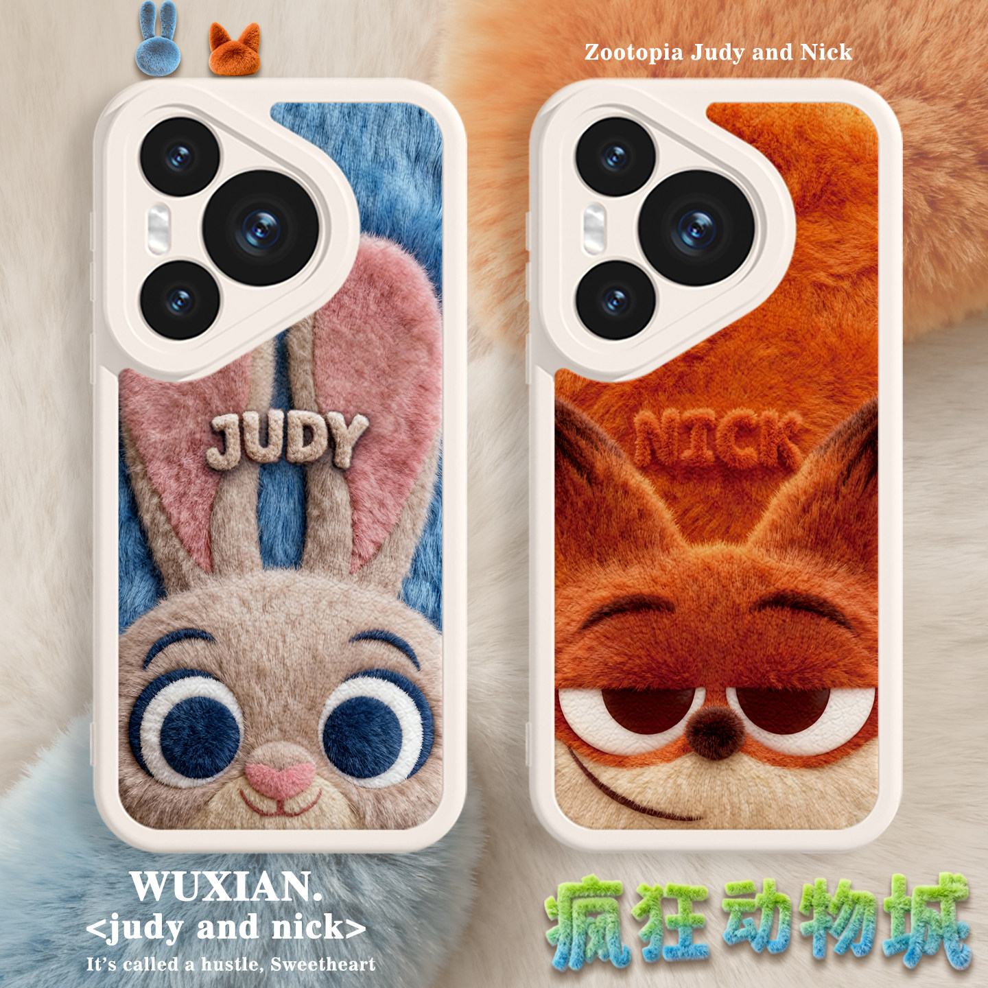 适用华为荣耀500尼克朱迪手机壳pura80pro毛绒mate70情侣400疯狂动物城2magic8小羊皮x70秋冬7毛茸茸60冬天50