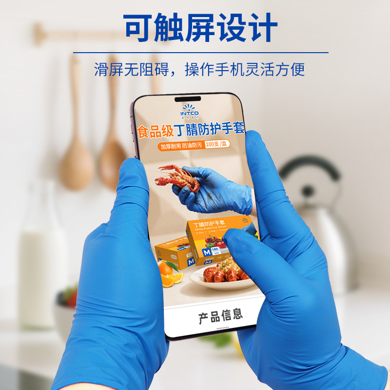 英科一次性食品级丁腈手套加厚耐用防水洗碗厨房防护清洁家务防滑