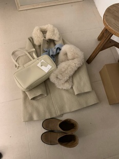 新款 韩国东大门狐狸毛领围巾双面羊毛呢子大衣斗篷外套女阔版 冬季