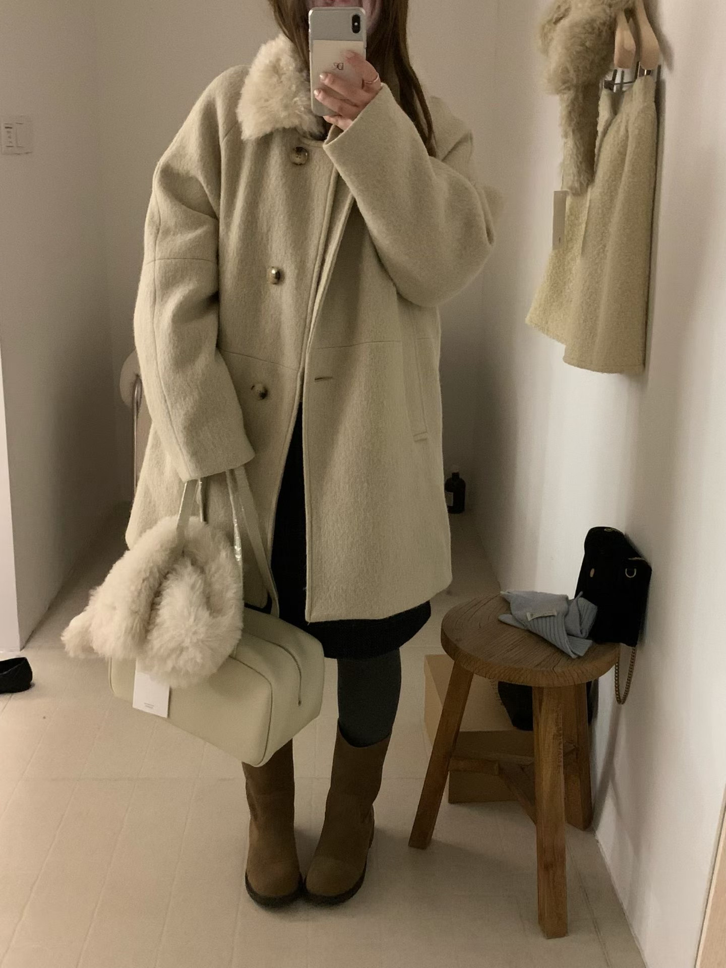 Lazy 掐腰夹棉毛呢大衣富家千金加厚毛领呢子外套 Didi赫本序章