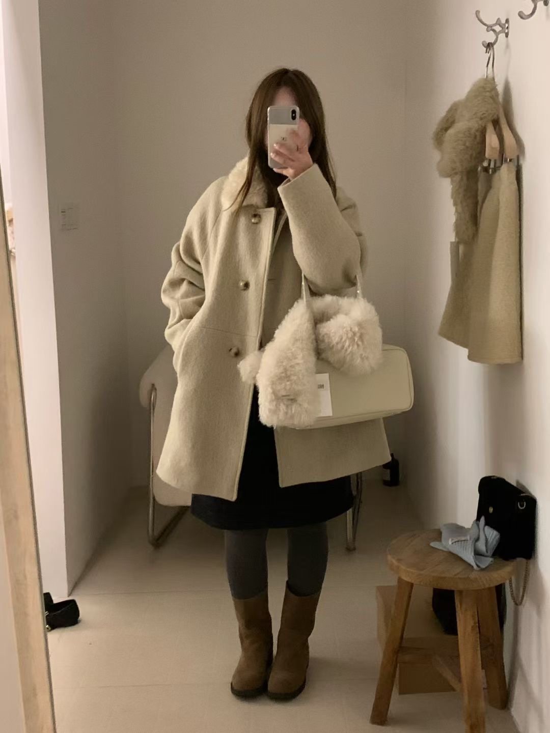 pusumede曼城之都 收腰毛呢外套 全羊毛双面呢大衣女高级感中长款
