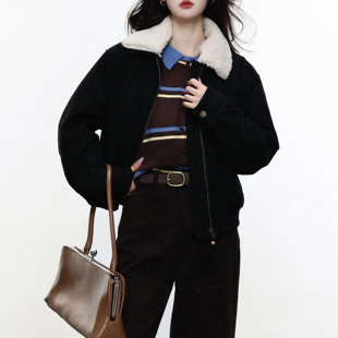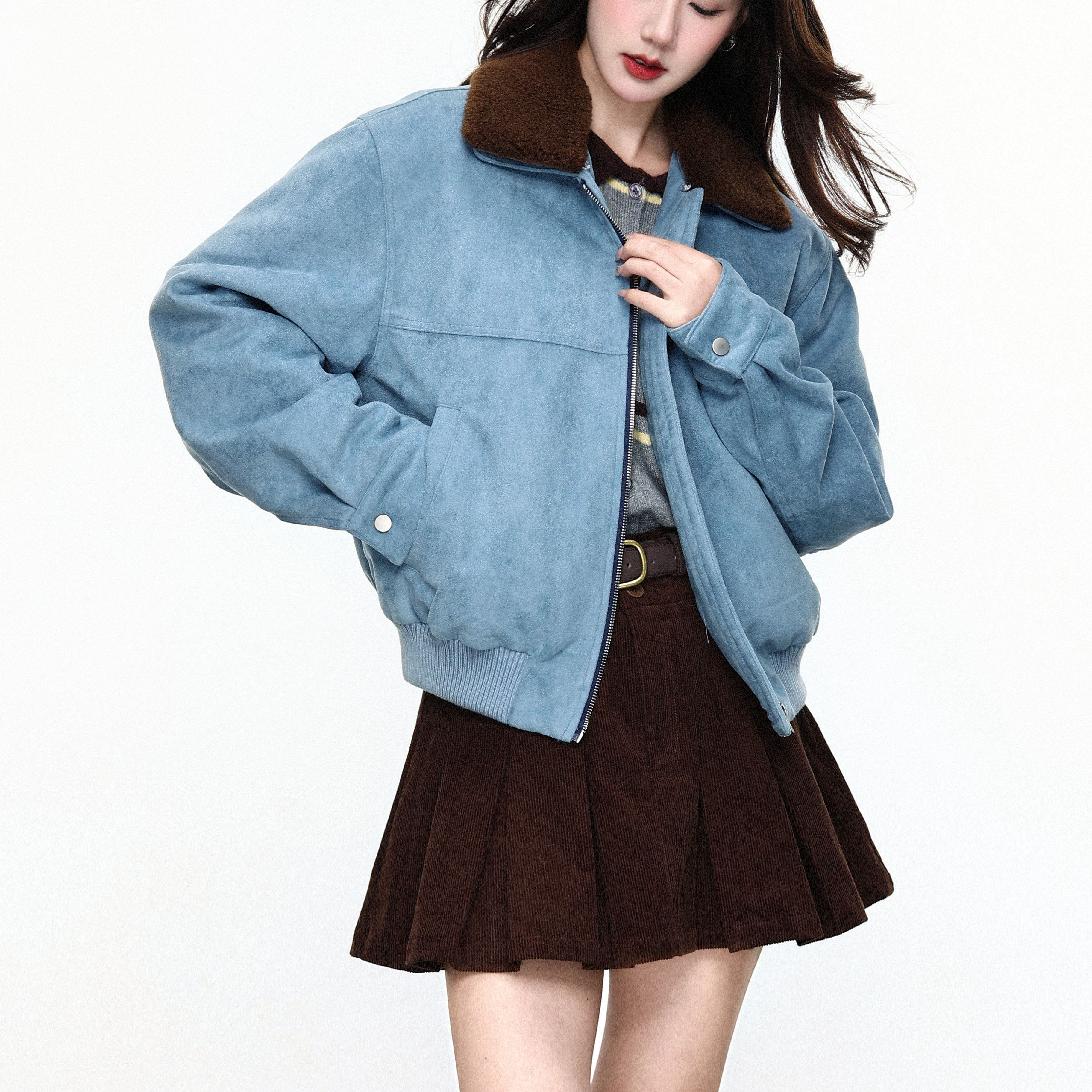 棉服外套休闲慵懒风 复古翻领麂皮夹克女短款 NTS97 可露丽棉外套