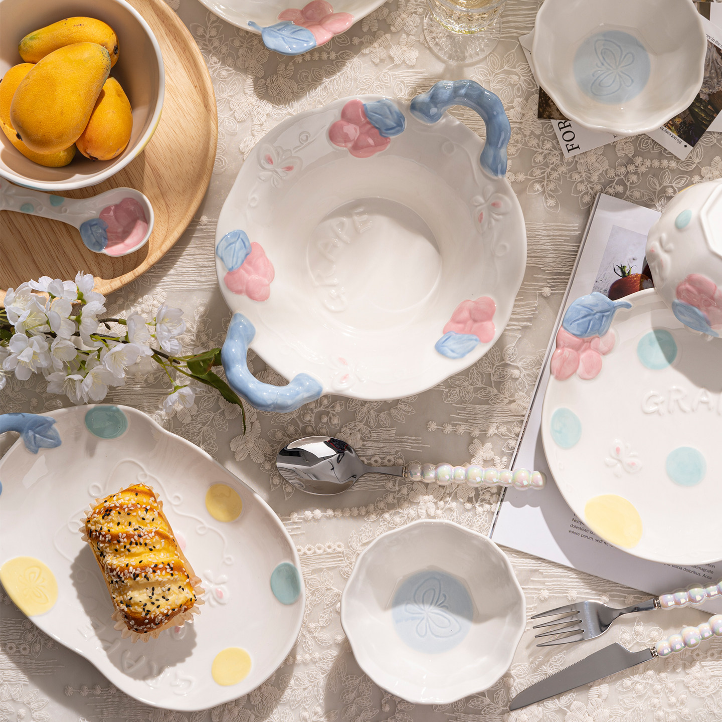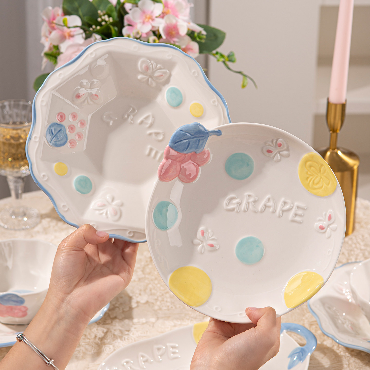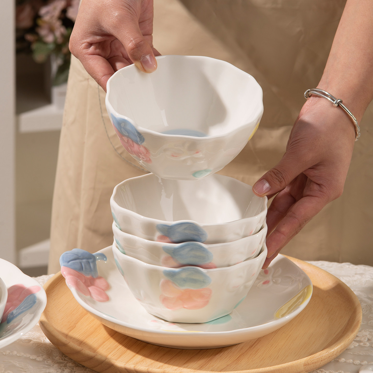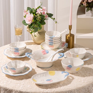 釉下彩卡通2025新款 家用可爱风陶瓷餐具乔迁新居礼物碗具 碗碟套装