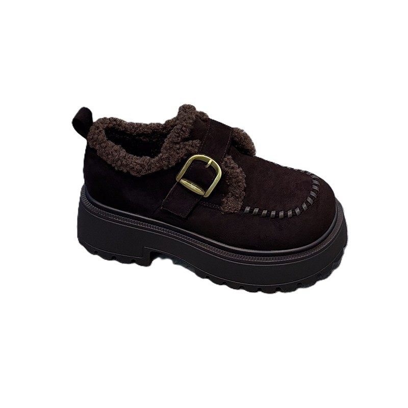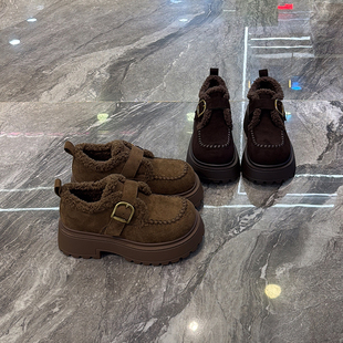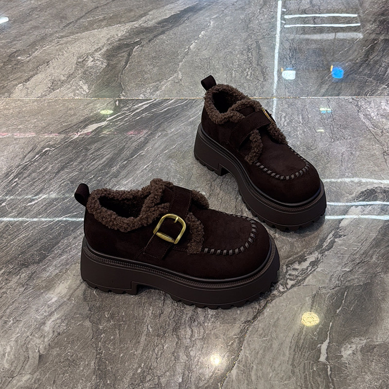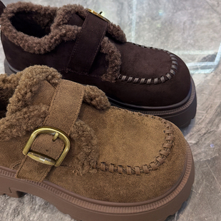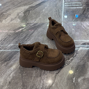 毛毛浅口单鞋 超轻增高加厚棉鞋 女2025冬新款 小个子绒面厚底乐福鞋