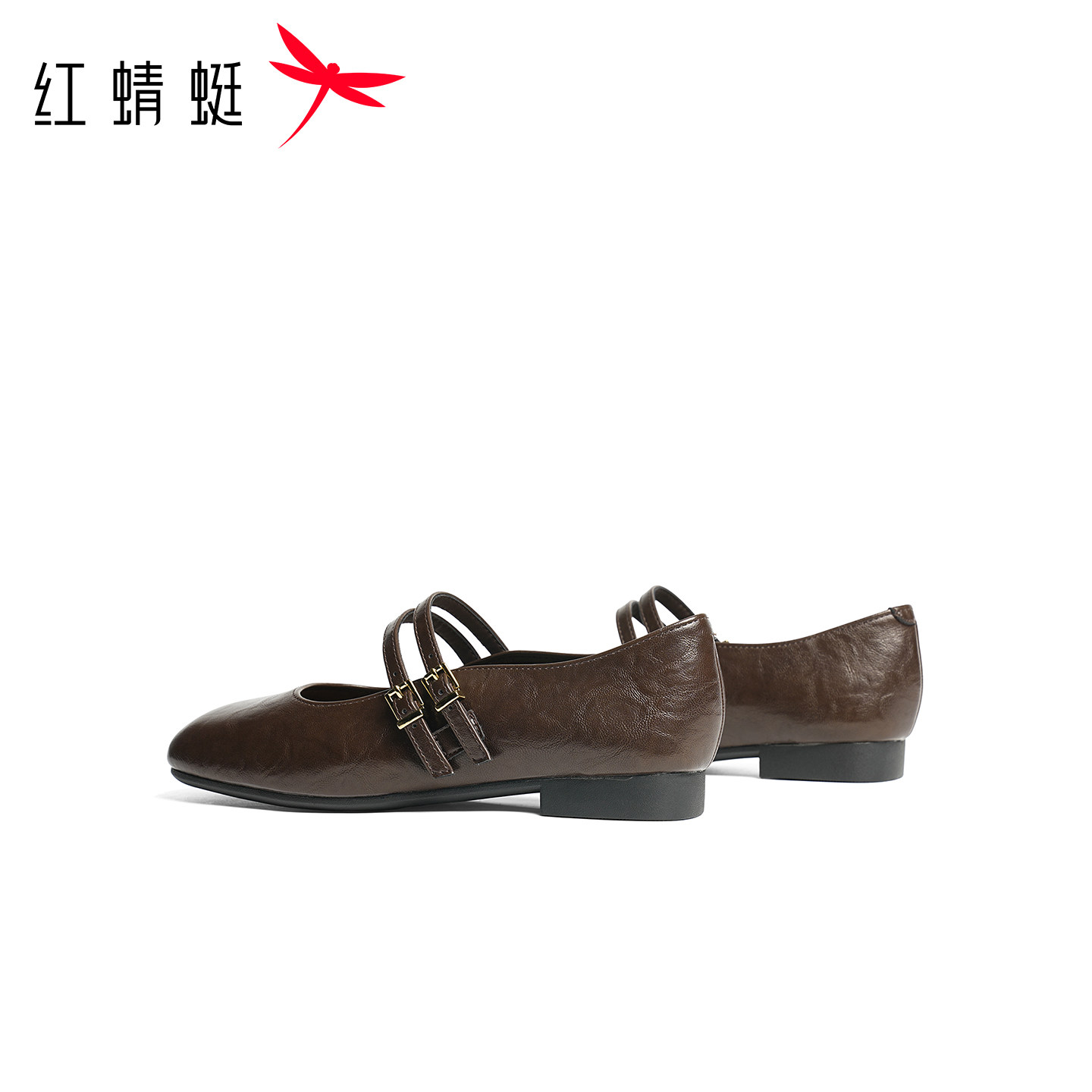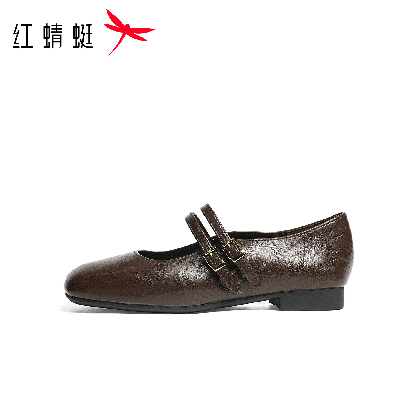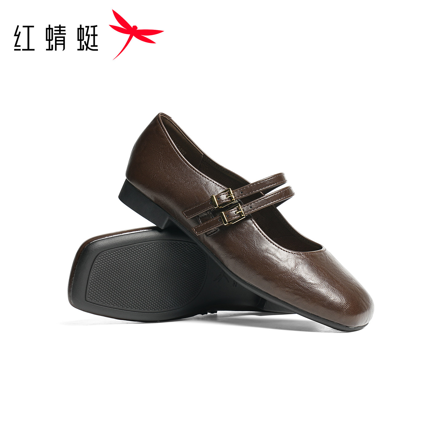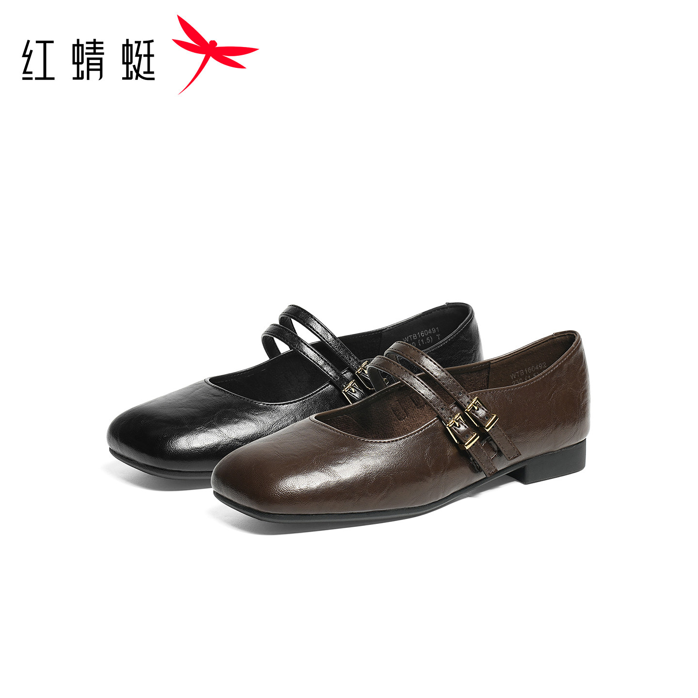 新款 2026春季 女鞋 舒适软底平底鞋 红蜻蜓单鞋 黑色小皮鞋 女玛丽珍鞋