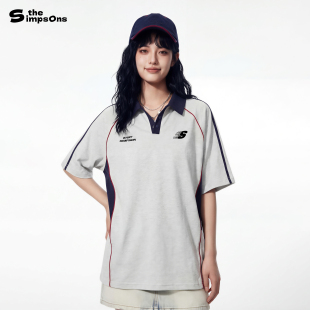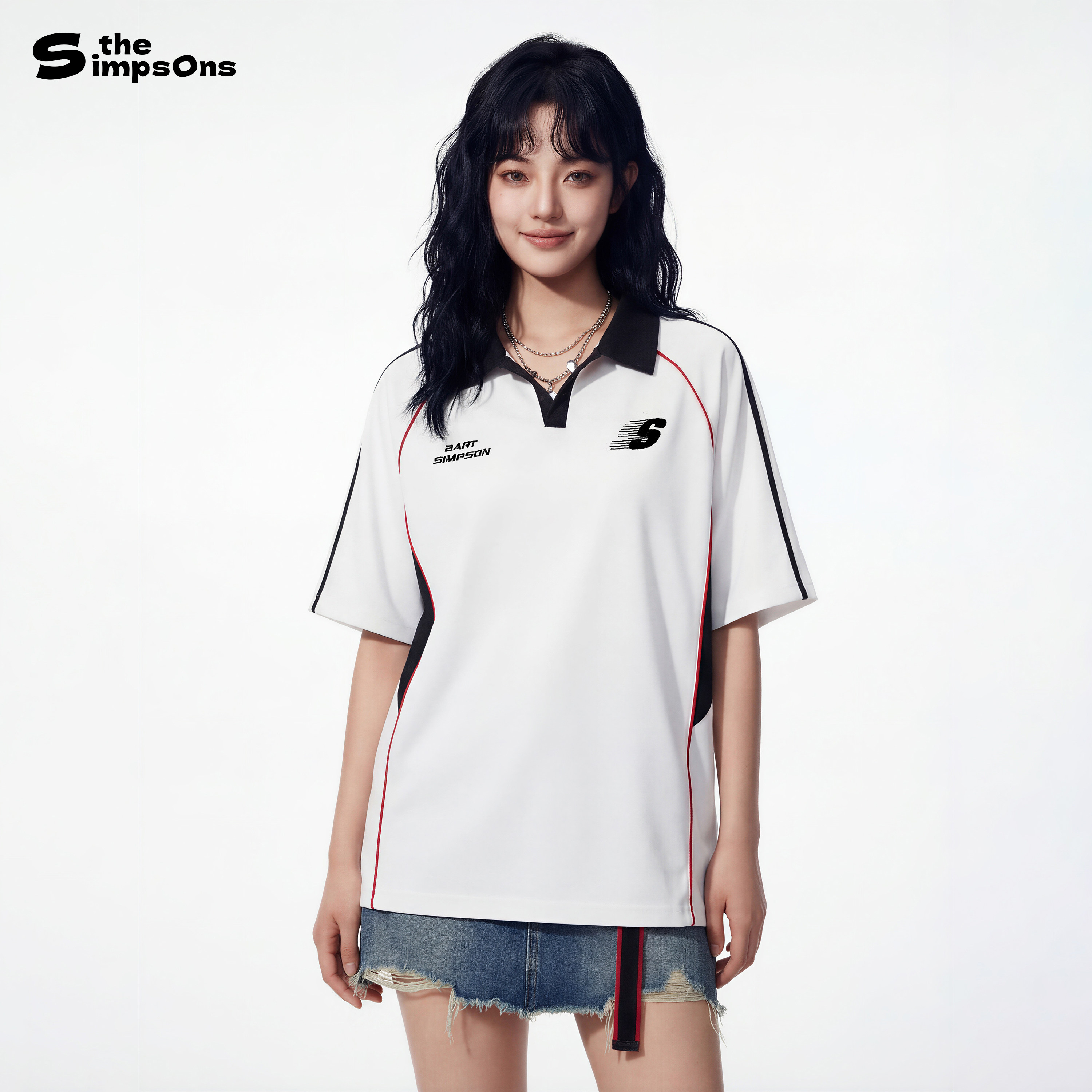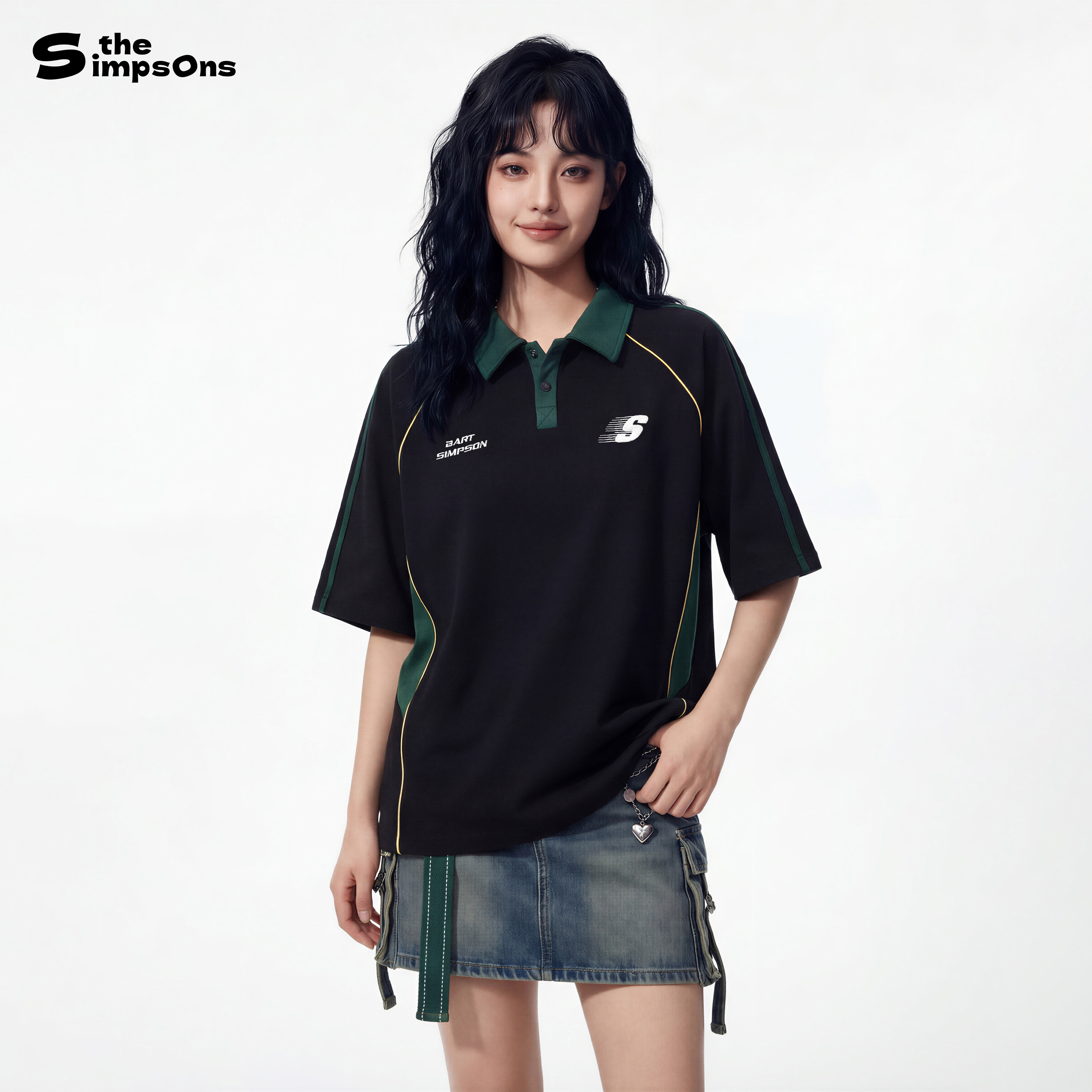 情侣装 辛普森一家短袖 T恤女学院风卡通字母刺绣撞色条纹T恤polo衫