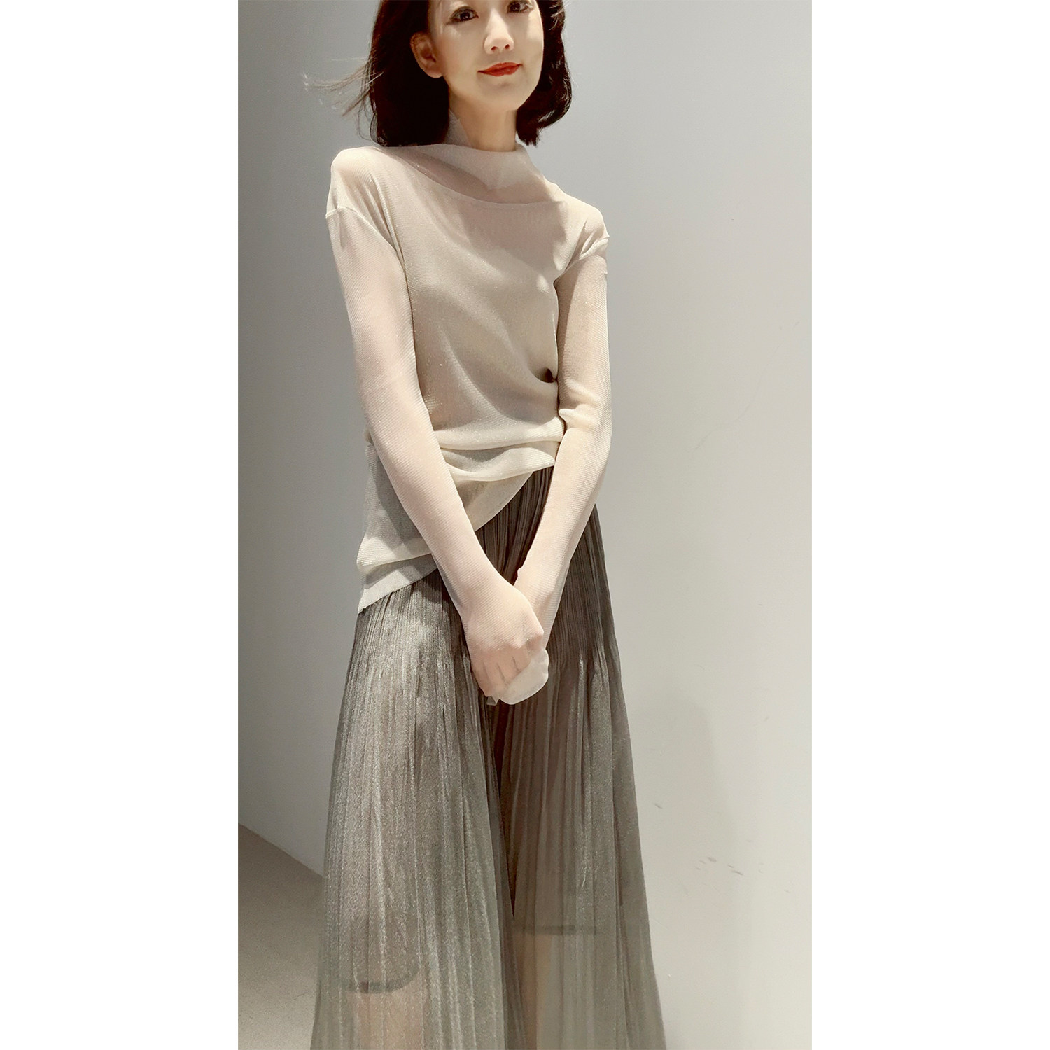 轻盈透气 闪耀朦胧感 褶皱收腰 套头 26春 打底衫 星光华尔兹
