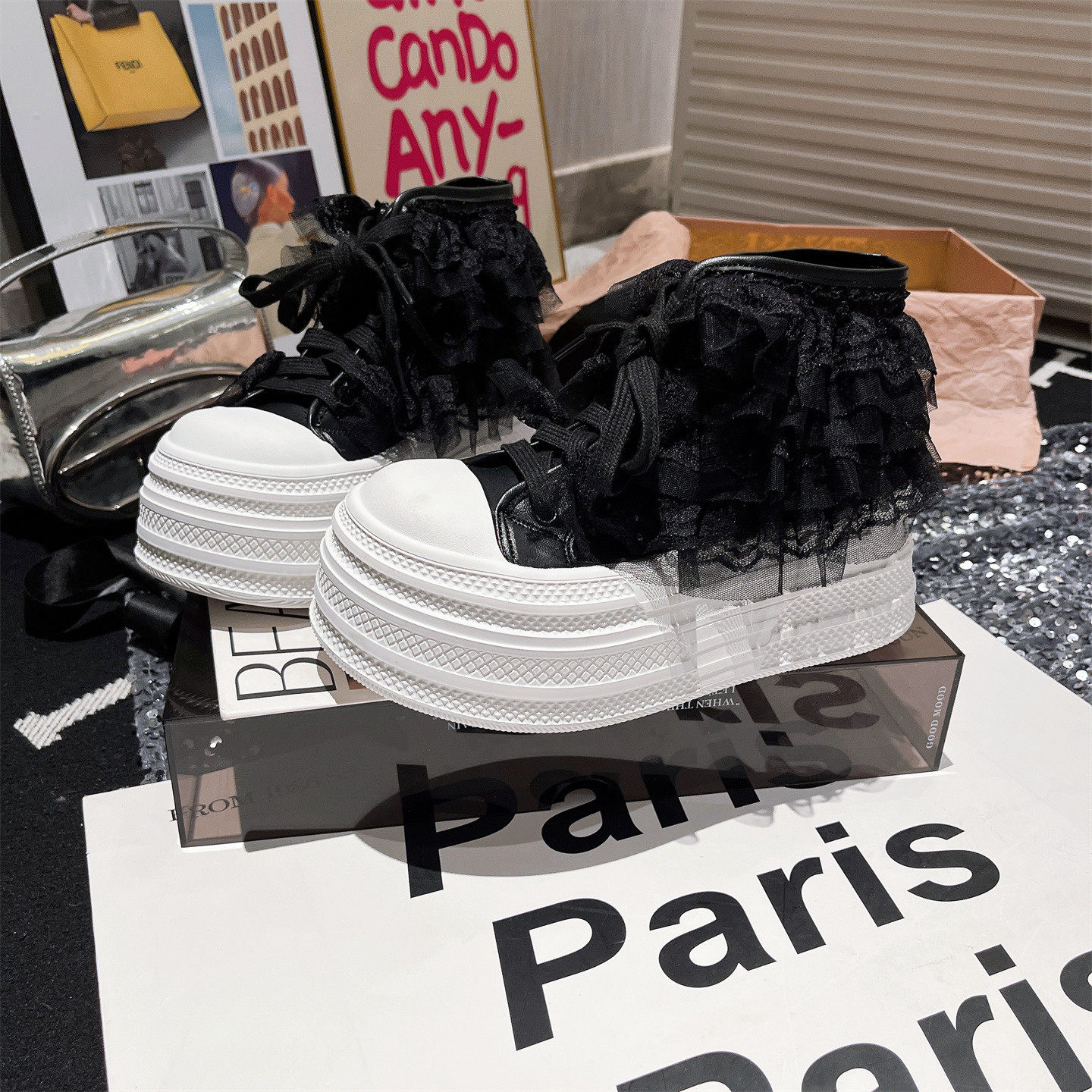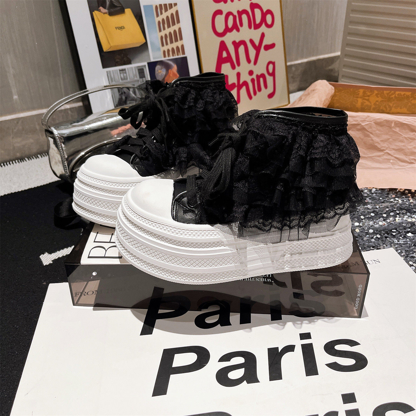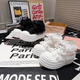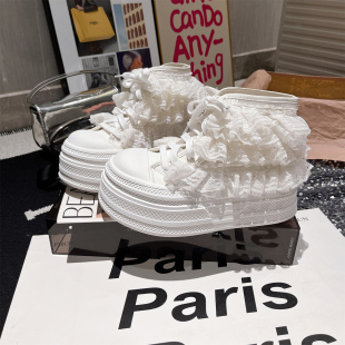 凉靴小个子百搭女鞋 2026春夏新款 贝壳头蕾丝裙摆厚底松糕短靴夏季