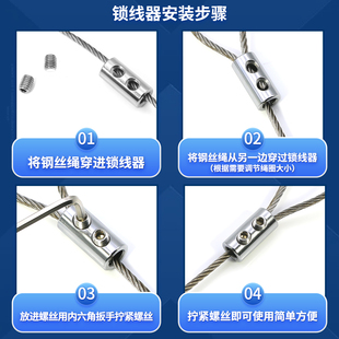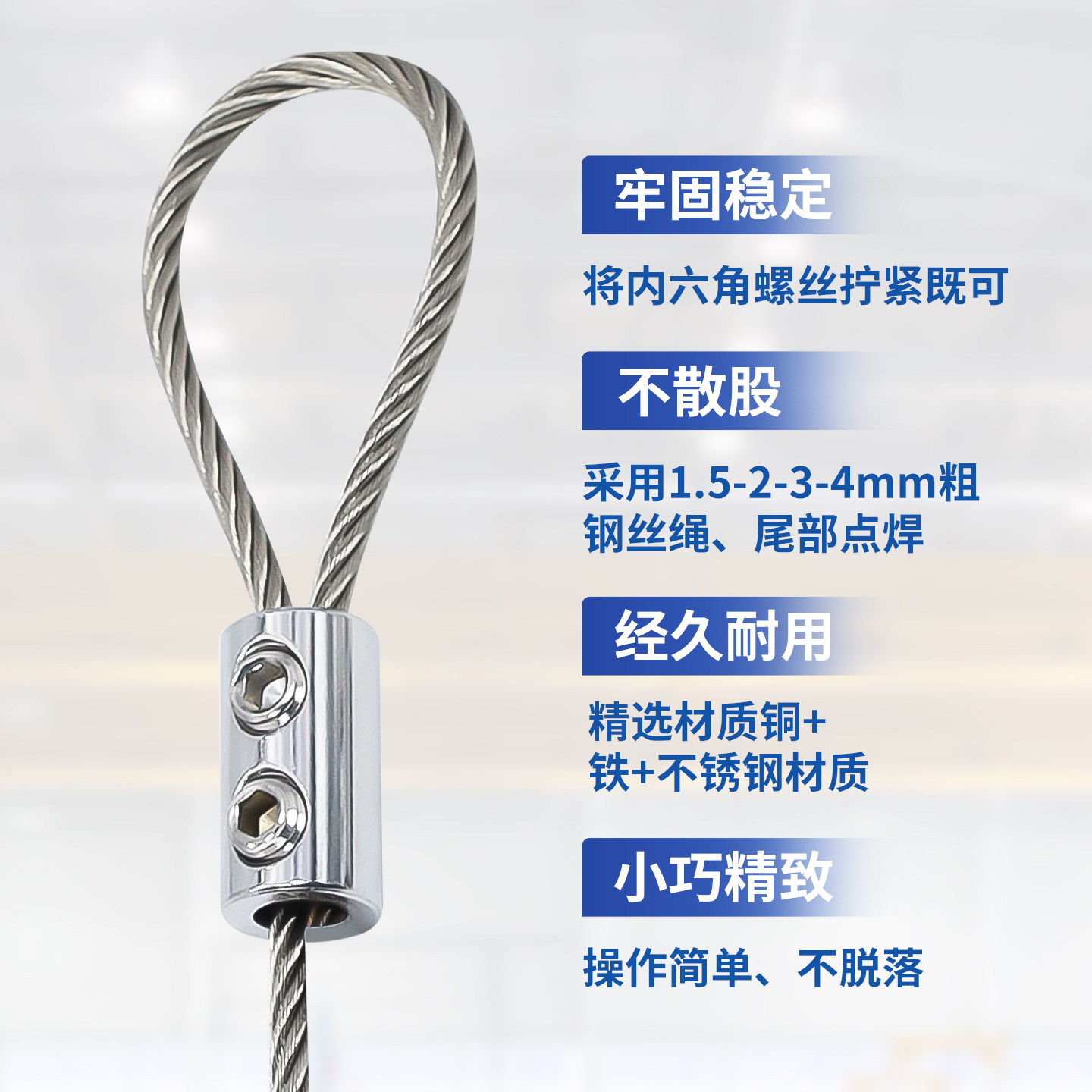 安全竖向扣 钢丝吊绳双头锁线器304不锈钢钢丝绳吊码 1.5 4mm加粗款