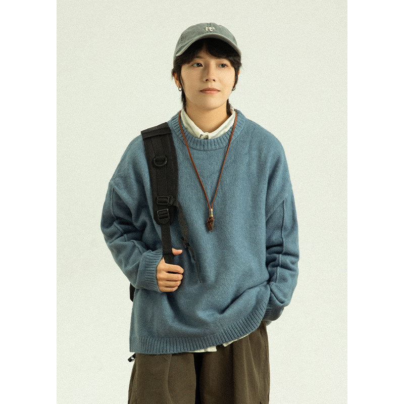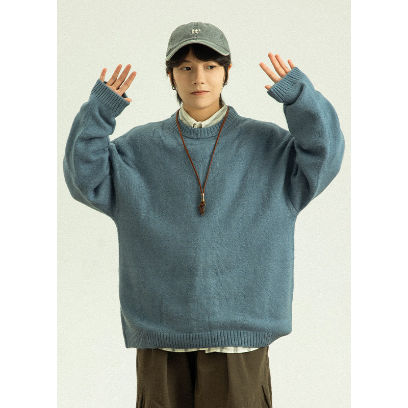 宽松套头针织打底羊绒衫 双股加厚100%纯羊毛衫 半高领男毛衣秋冬季