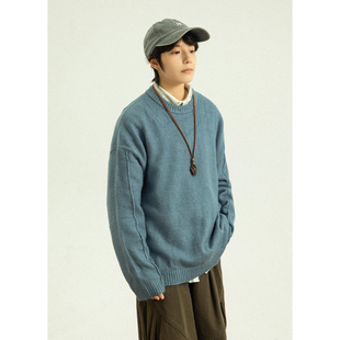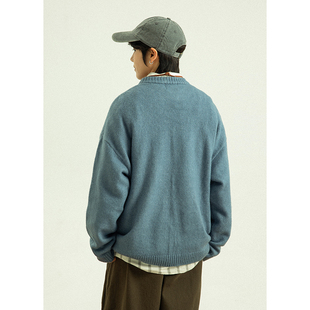 宽松显瘦上衣 新款 Girlyhalo美式 复古印花套头圆领针织毛衣女秋季