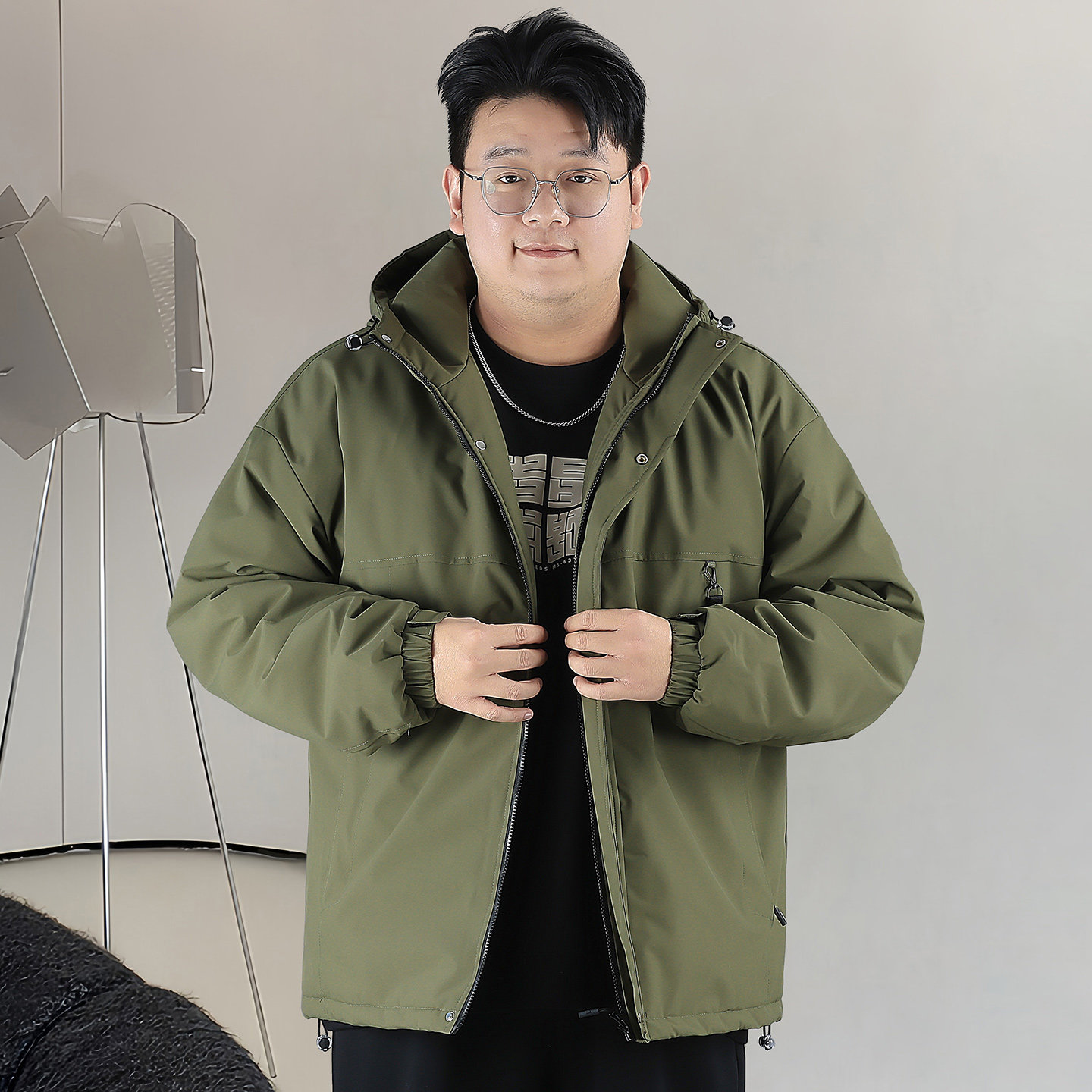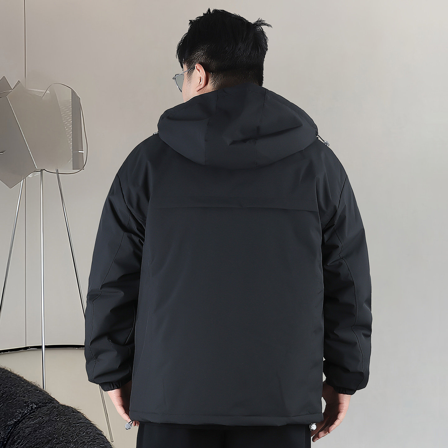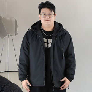胖子加肥加大连帽休闲户外防风棉衣夹克男 棉服外套秋冬款 大码 男士