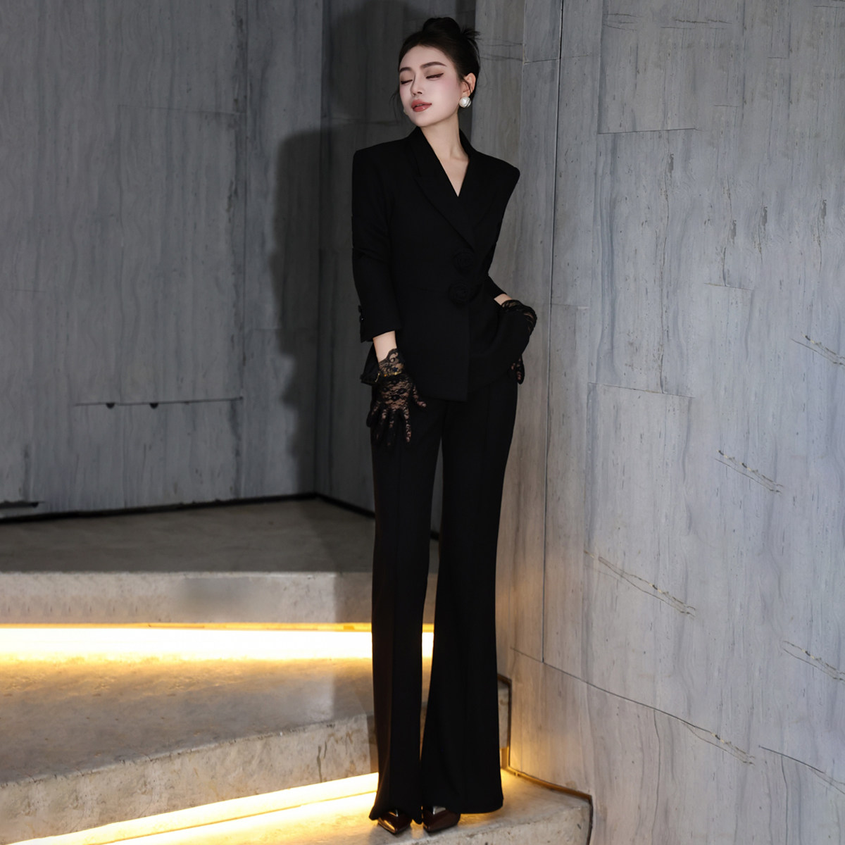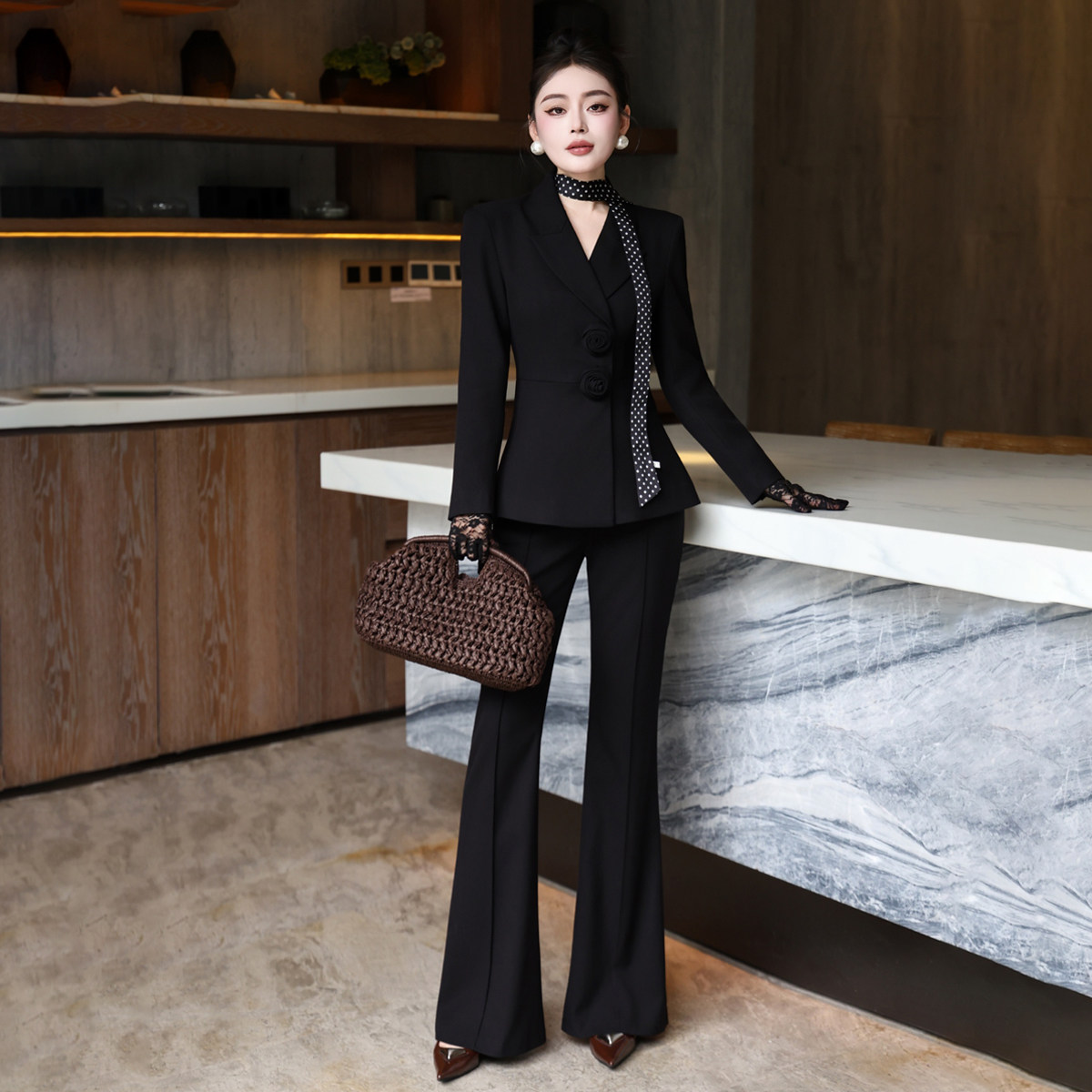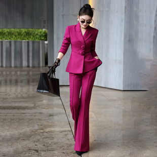 外套直筒微喇裤 气质职业套装 显瘦翻领西装 修身 两件套 2025秋冬季