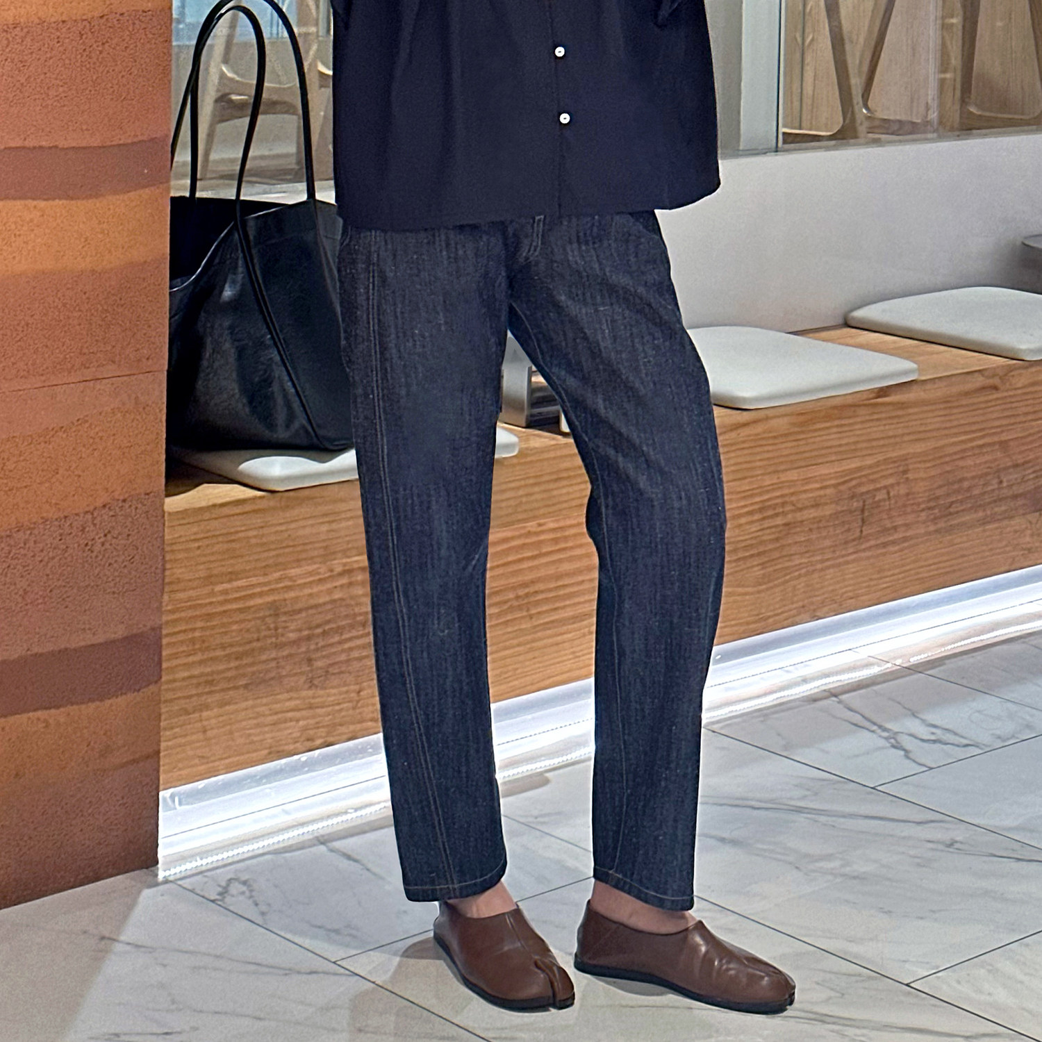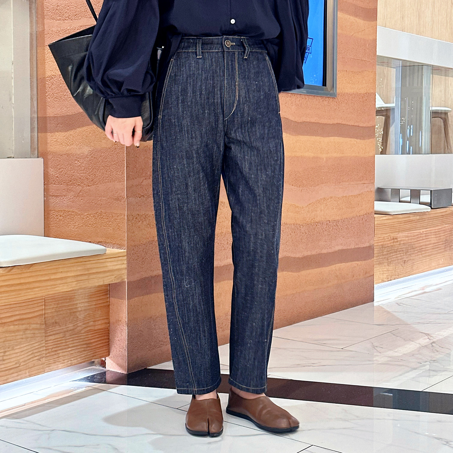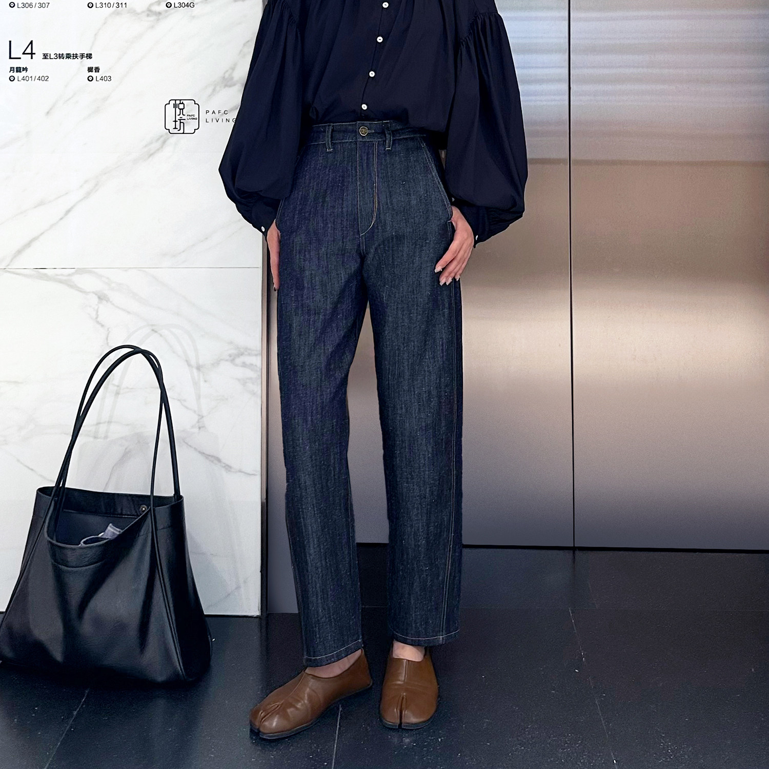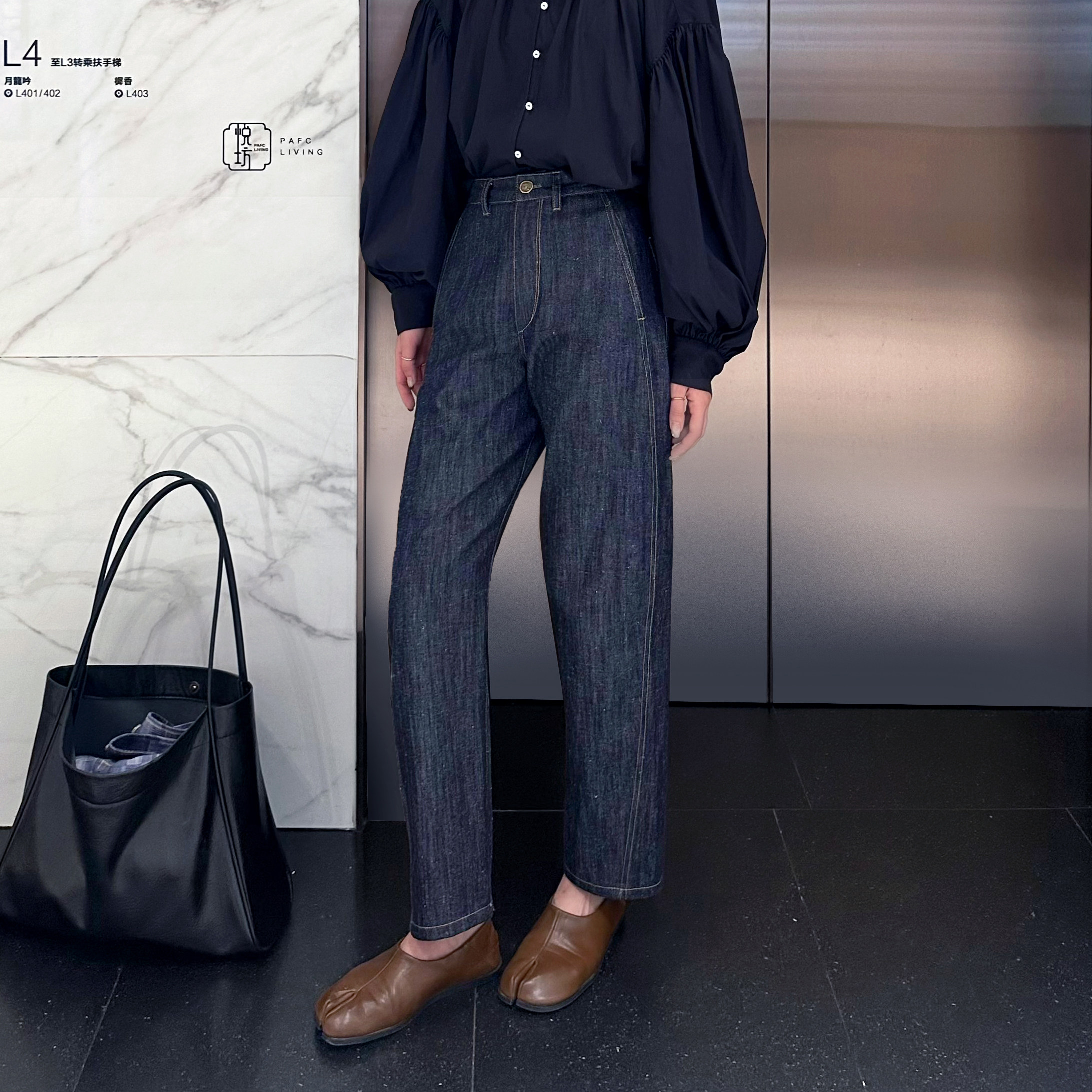 子 高腰显高显瘦小个子老爹裤 画粉原创扭缝小脚哈伦牛仔裤 女新款