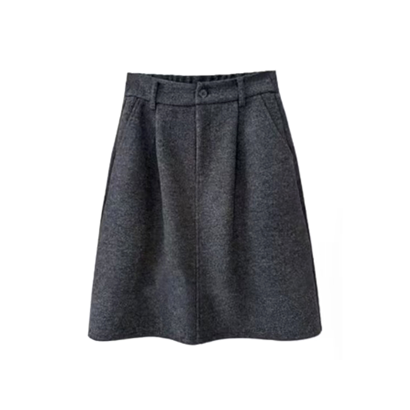 深灰色花苞中裙秋冬毛呢半身裙大码 小个子短裙梨形伯克利裙子 女装