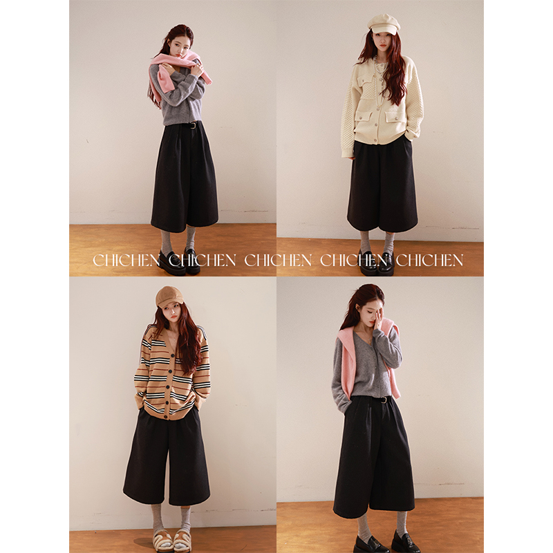 灰色裤 CHICHEN晨妍 百搭王贝壳褶休闲羊毛中裤 格调王者 子 秋冬版