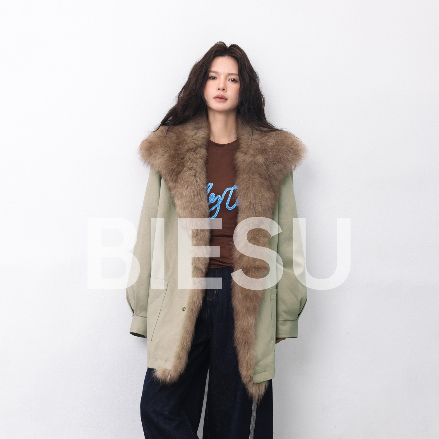 别素 衣橱直播间 两穿宽松90鹅绒毛皮派克外套 所有女生