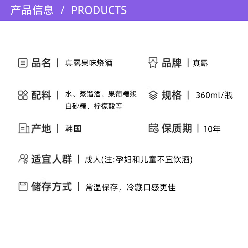 清酒利口果酒女士低度甜酒 韩国真露烧酒青葡萄味韩剧同款 自营