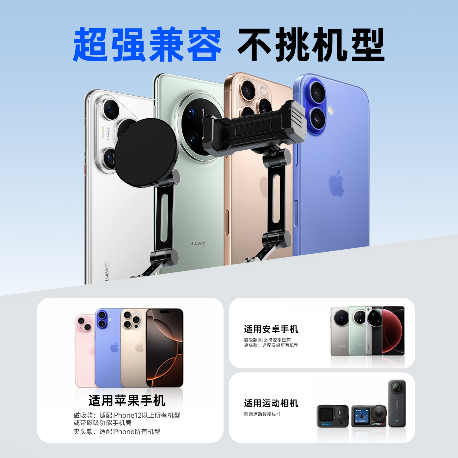 挂脖手机支架第一视角拍摄设备磁吸防抖全景相机胸前固定脖子vlog拍摄神器骑行钓鱼第一人称直播运动相机通用