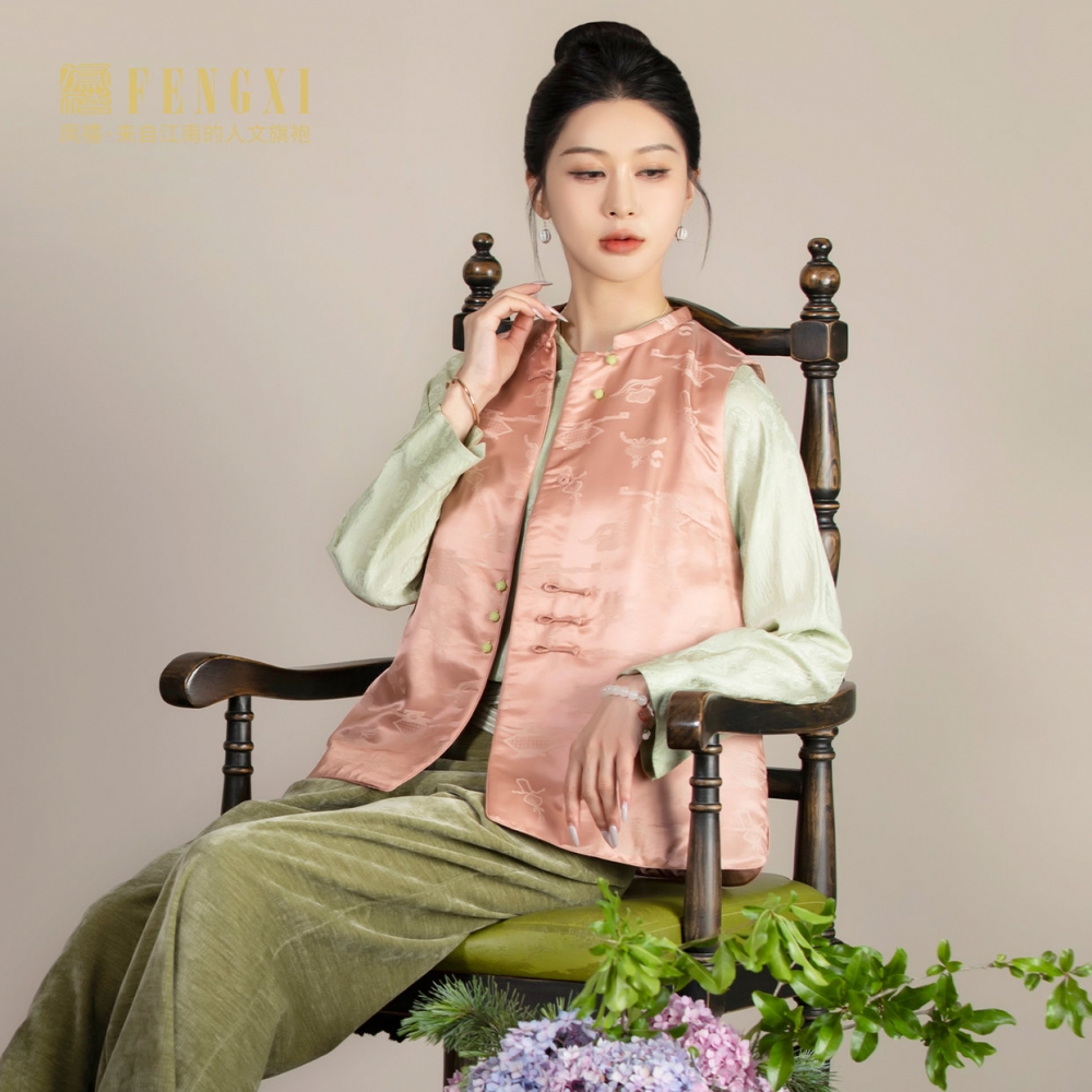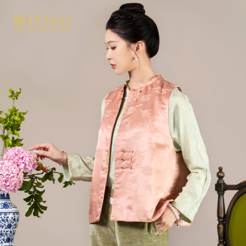 背心马夹国风提花坎肩女 盘扣无袖 凤禧新中式 短棉马甲提花改良唐装