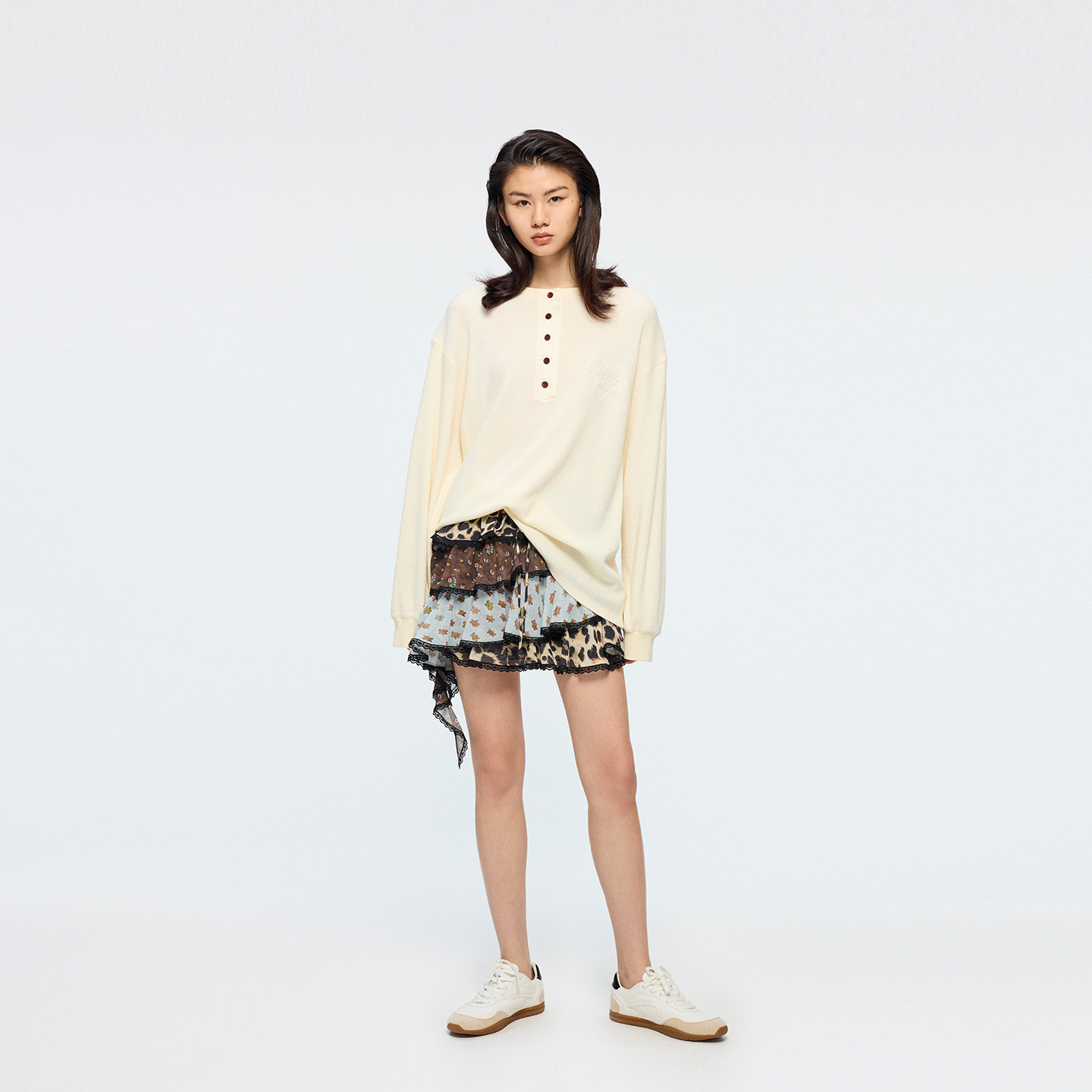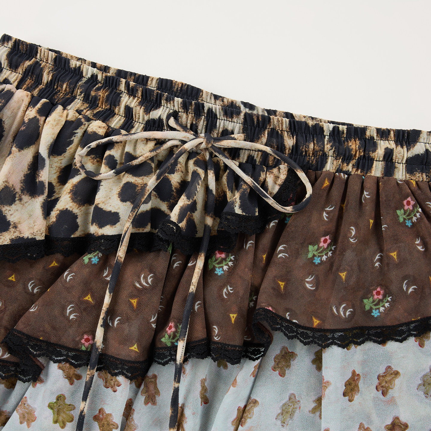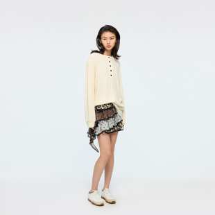 「魔法花园」豹纹花卉拼接半裙 新款 UOOYAA 乌丫2026春季