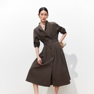 腰带风衣式 新款 简约通勤长裙3261SZ001 Moda连衣裙女2026春季 Vero