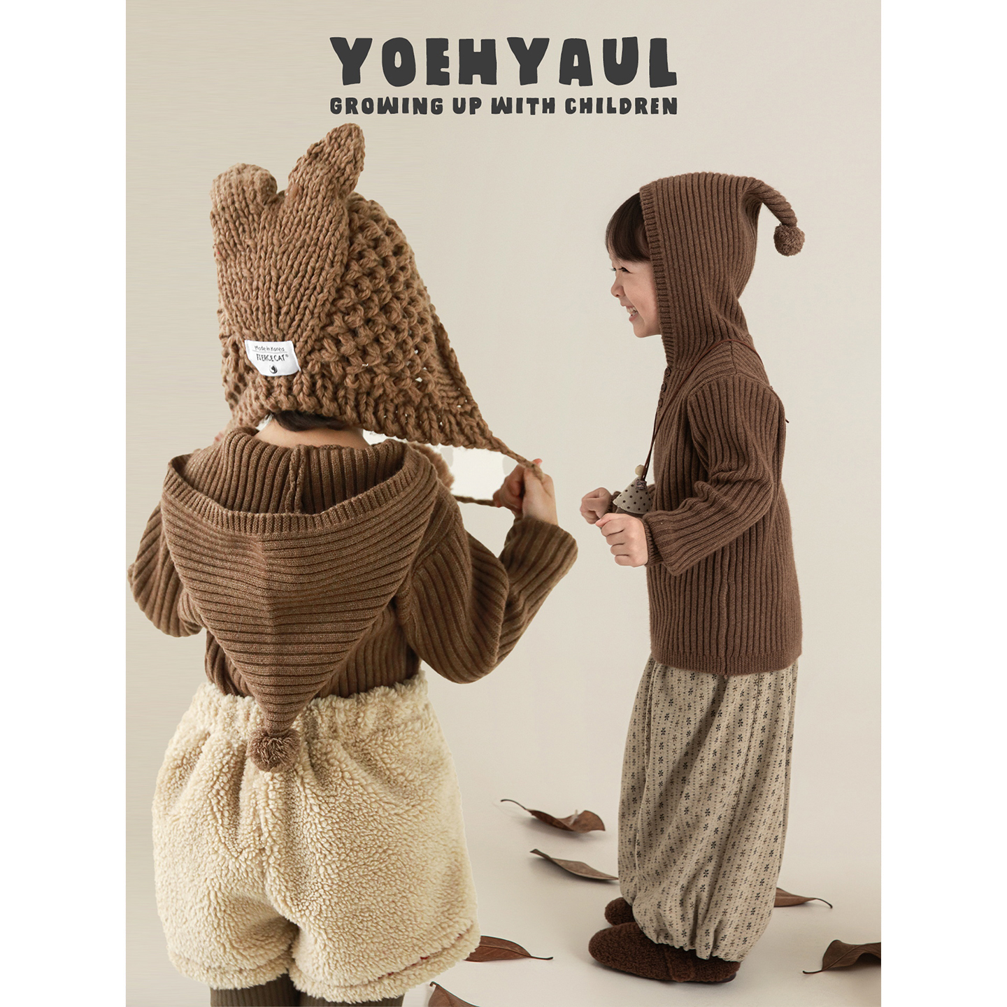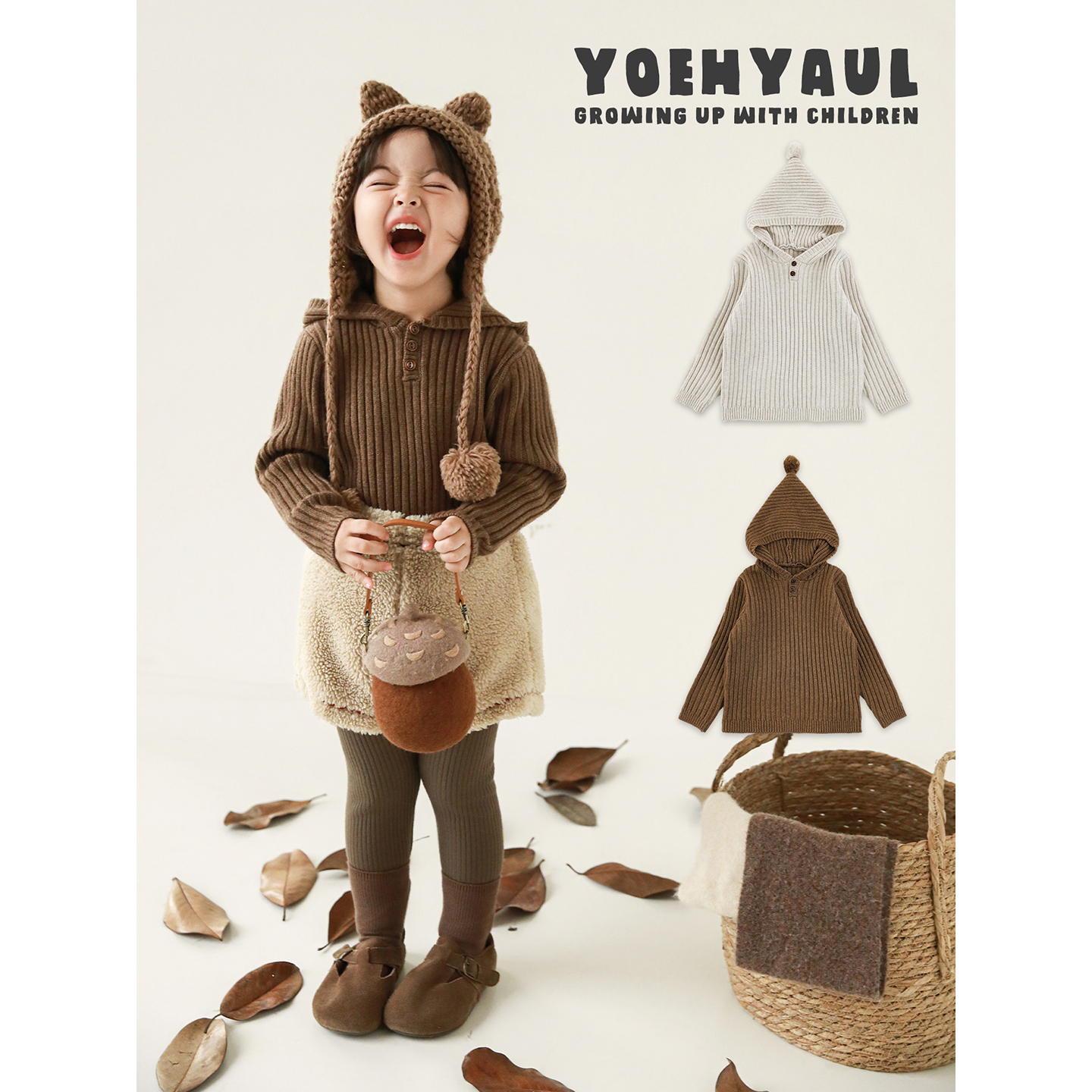 慵懒百搭保暖儿童休闲上衣 尖尖连帽毛衣时尚 幼悠女童2025冬季 新款